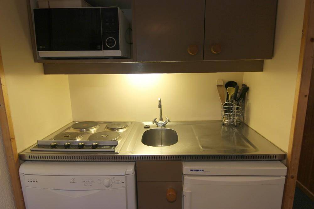 Die Residenz Arcelle vefindet sich im Herzen der Station Val Thorens im Viertel Caron in der Nähe der Geschäfte, Restaurants gengenüber dem Sportszentrum Caron und in der Nähe der Dienste der Station: Verkehrsamt, Banken, Seilbahnen, Skischule, Treffpunkt der Skikurse ESF und Schlittengebiet für die Kinder. Direkter Zugang zu den Pisten. Plan der Station Nr. 5/D2. Fläche von ungefähr 28 m². 4te Etage. Orientierung : Ost, Süd. Wohnzimmer. offener Schlafbereich mit 2 Stockbetten. Schlafbereich mit 2 Einzelbetten. Kochnische mit Backofen, kleiner Backofen mit Mikrowellenfunktion, Geschirrspülmaschine, 2 elektronische Herdplatten, Kühlschrank. Badezimmer mit Badewanne. separates WC. Balkon. Die oberen Betten sind nicht für Kinder unter 6 Jahren geeignet.