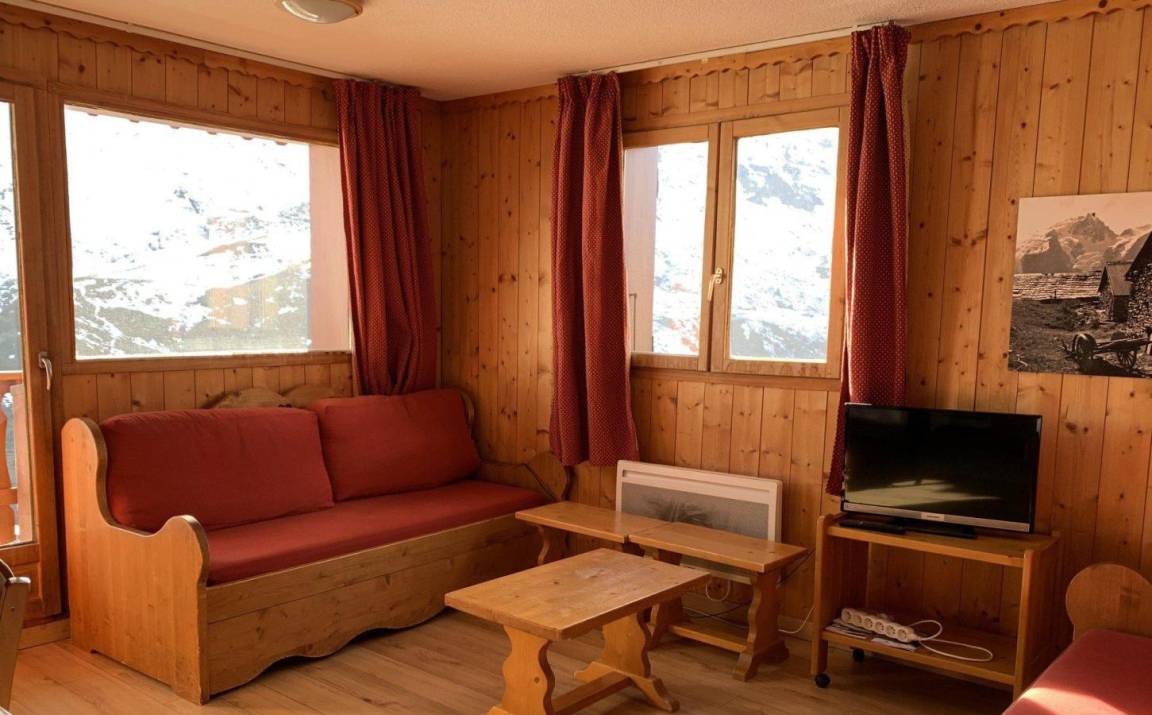 Das Chalet Courmayeur der Residenz Les Côtes d'Or liegt im Bezirk Reberty 1850 auf den Höhen des Ferienortes Les Menuires in den französischen Alpen. Diese Chalets bieten Ruhe und befinden sich in der Nähe von Geschäften und Restaurants. Sie sind außerdem ideal am Fuße der Pisten gelegen. In der Residenz Les Cotes d'Or (2 bis 5 Zimmer) wurden einige der Apartments komplett renoviert und bieten luxuriöse Unterkünfte. Fläche von ungefähr 58 m². 1te Etage. Orientierung : Süd, West. Wohnzimmer mit 2 Sofabetten. Schlafzimmer mit Doppelbett. Schlafzimmer mit 2 Stockbetten. Schlafzimmer mit 4 Stockbetten. Kochnische mit Kaffeemaschine (filtre), Backofen, Dunstabzugshaube, Geschirrspülmaschine, 4 Glaskeramikkochfelder, Kühlschrank. Badezimmer mit Badewanne, Waschbecken, Handtuchtrockner. Waschräume mit Dusche, Waschbecken. separates WC. Balkon. Die oberen Betten sind nicht für Kinder unter 6 Jahren geeignet.