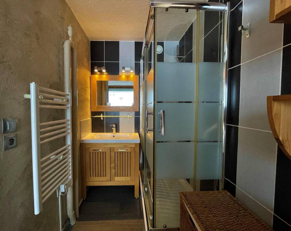 Die Residenz Péclet befindet sich im Zentrum von Les Menuires, im Viertel La Croisette. Die Residenz Péclet liegt direkt an der Einkaufsstraße La Croisette und ist nur wenige Gehminuten von der Bushaltestelle und dem Schwimmbad entfernt. Fläche von ungefähr 36 m². 3te Etage. Orientierung : Süd. Wohnzimmer mit 2 Einzelbetten. Schlafzimmer mit Doppelbett, Waschraum. Kochnische mit Wasserkocher, Kaffeemaschine, Backofen, Mikrowellengrill, Geschirrspülmaschine, Mikrowellenherd, 3 Induktionsherdplatten, Kühl-Gefrier-Kombination. separates WC. Balkon. Waschmaschine, Wäschetrockner.
