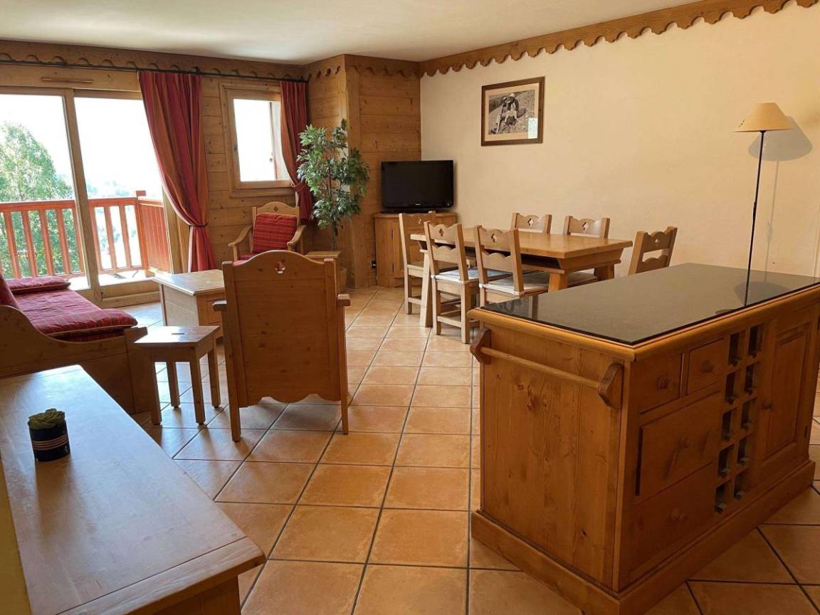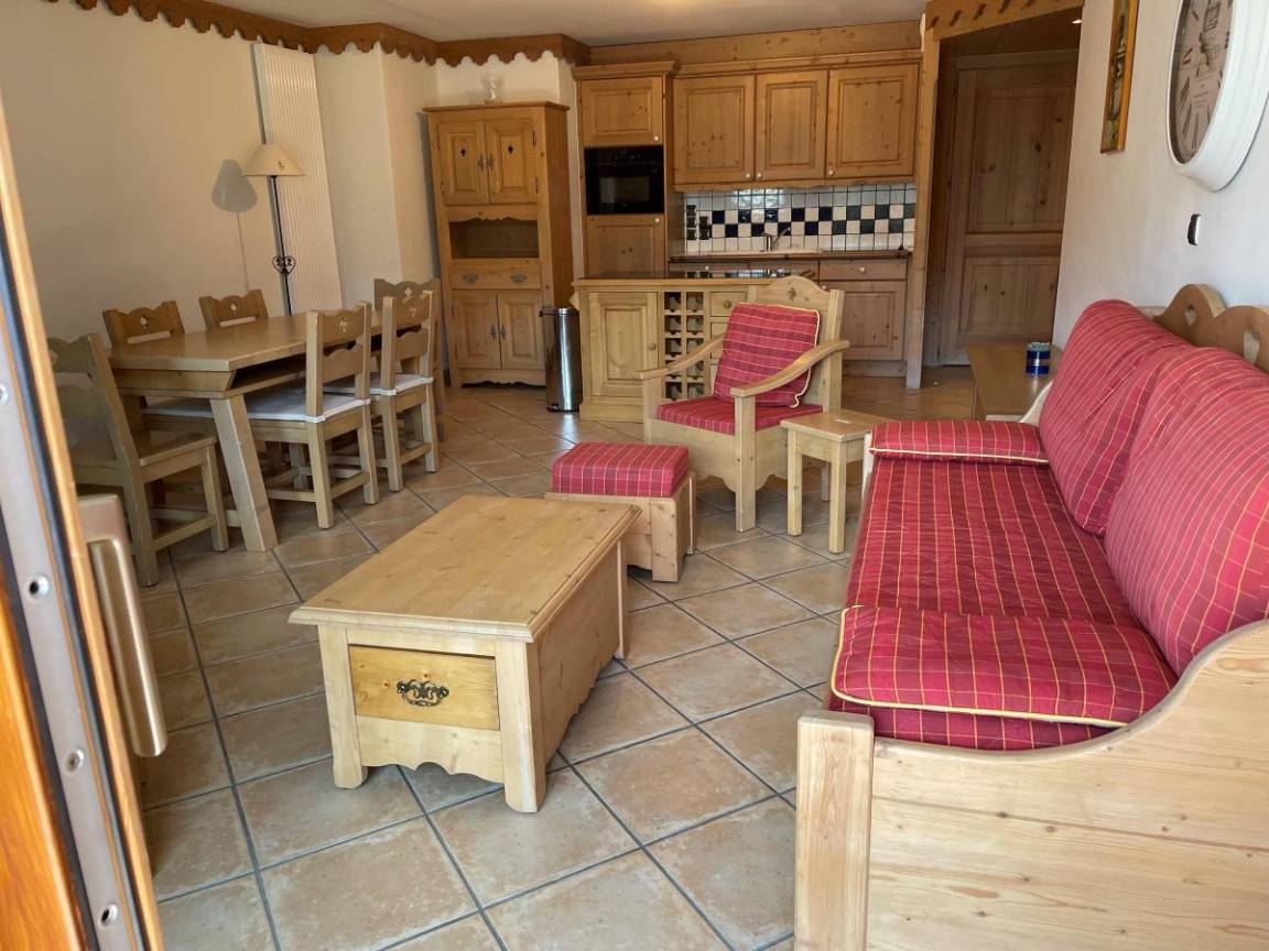 Fläche von ungefähr 71 m². 4te Etage. Orientierung : Süd-West, West. Blick tal und Skipisten. Diele. Wohnzimmer mit Klappschlafcouch, Heizkörper. Schlafzimmer mit Dusche, Doppelbett (160x190), Heizkörper, WC. Schlafzimmer mit 2 Einzelbetten (80x190), Heizkörper. Küche mit Kaffeemaschine, kleiner Backofen mit Mikrowellenfunktion, Toaster, Geschirrspülmaschine, 2 Glaskeramikkochfelder, Kühlschrank. 2 Badezimmer. WC. Balkon mit Stuhl, Tisch.