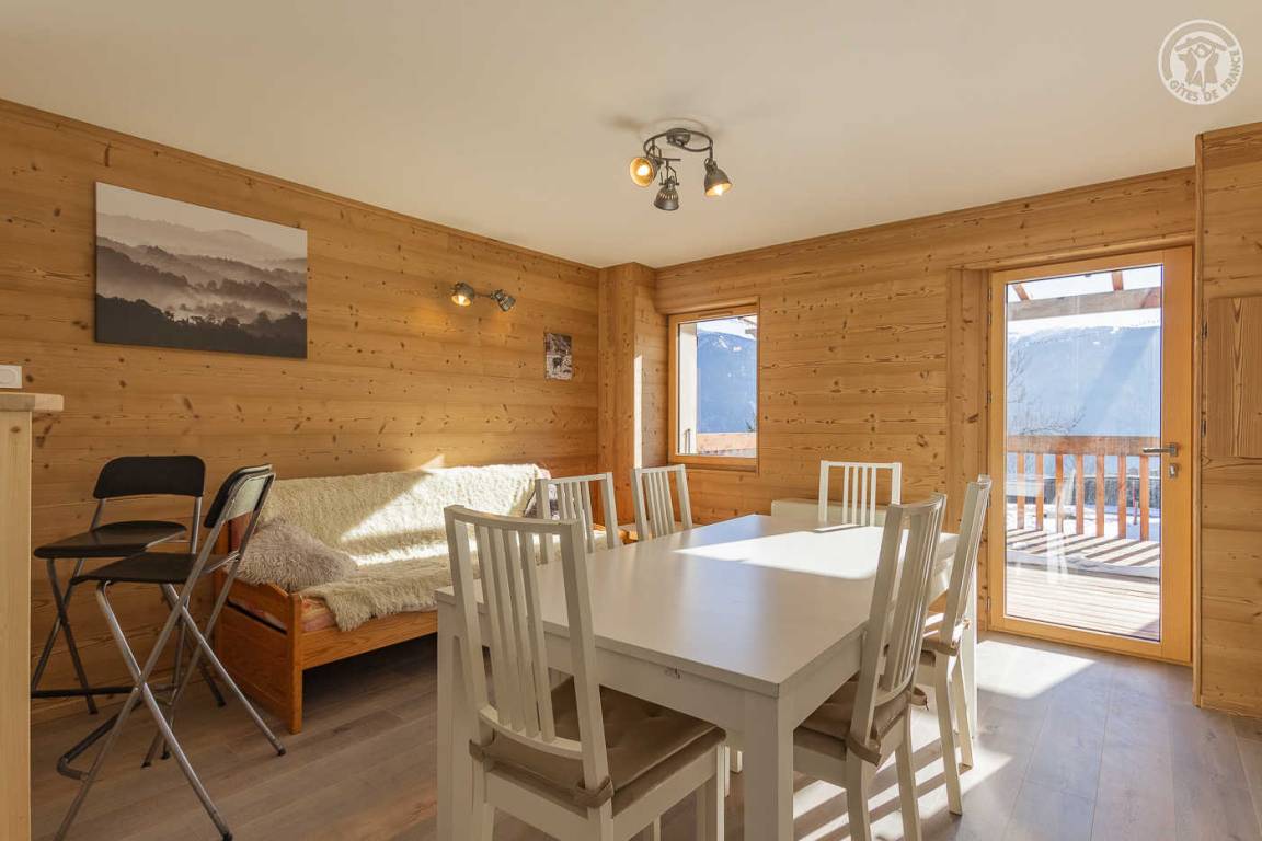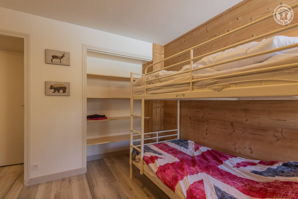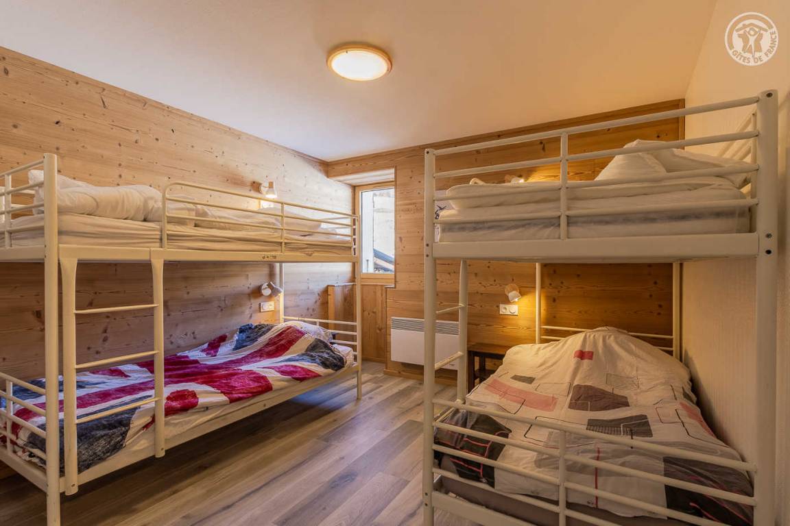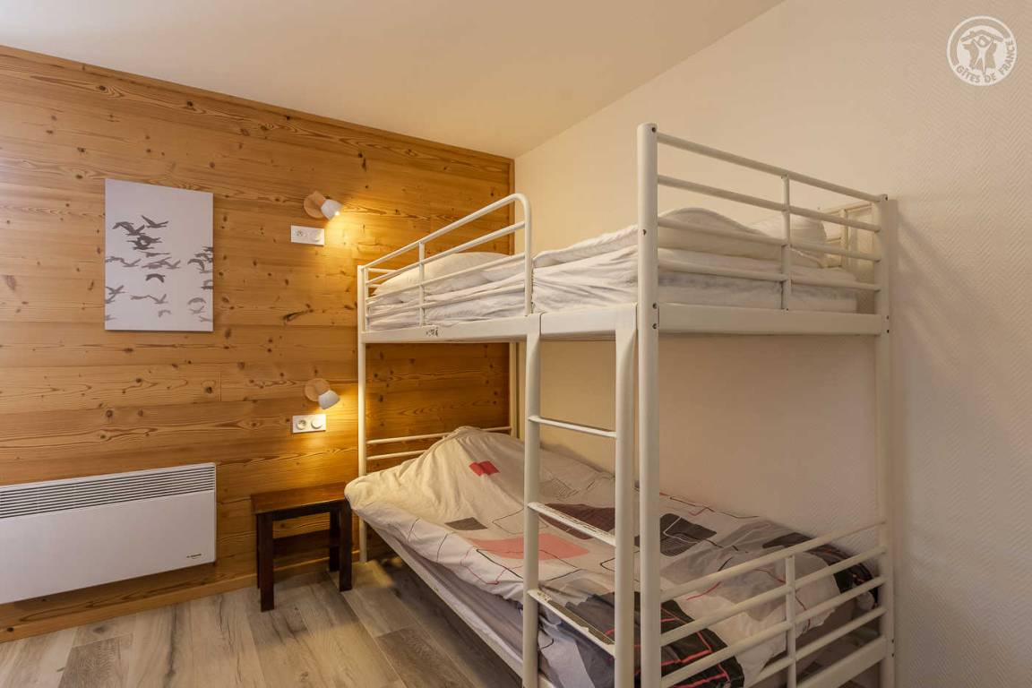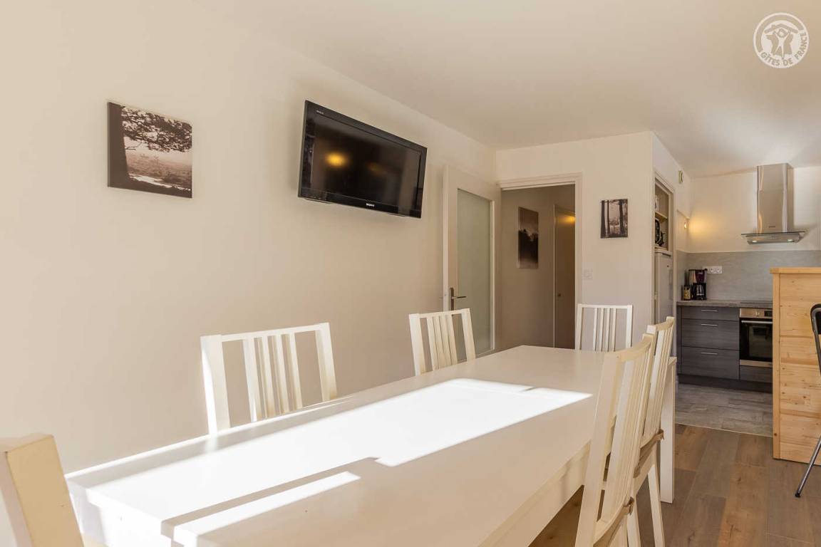 Gîte in einem Haus mit einem weiteren Gîte und der Wohnung der Eigentümer. Gemeinsamer Eingang. 1. Stock: Wohnküche mit Sitzecke, 2 Schlafzimmer (1 Doppelbett 180 x 200 cm / 2 x 2 Etagenbetten 90 x 190 cm), ein Badezimmer (Badewanne), separates WC. Gemeinsame Waschmaschine mit der anderen Ferienwohnung im Erdgeschoss des Hauses. Private Terrasse von 17 m² in Südlage. Große Gemeinsamkeit.