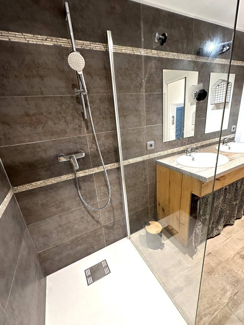 – ein Badezimmer mit großer Dusche