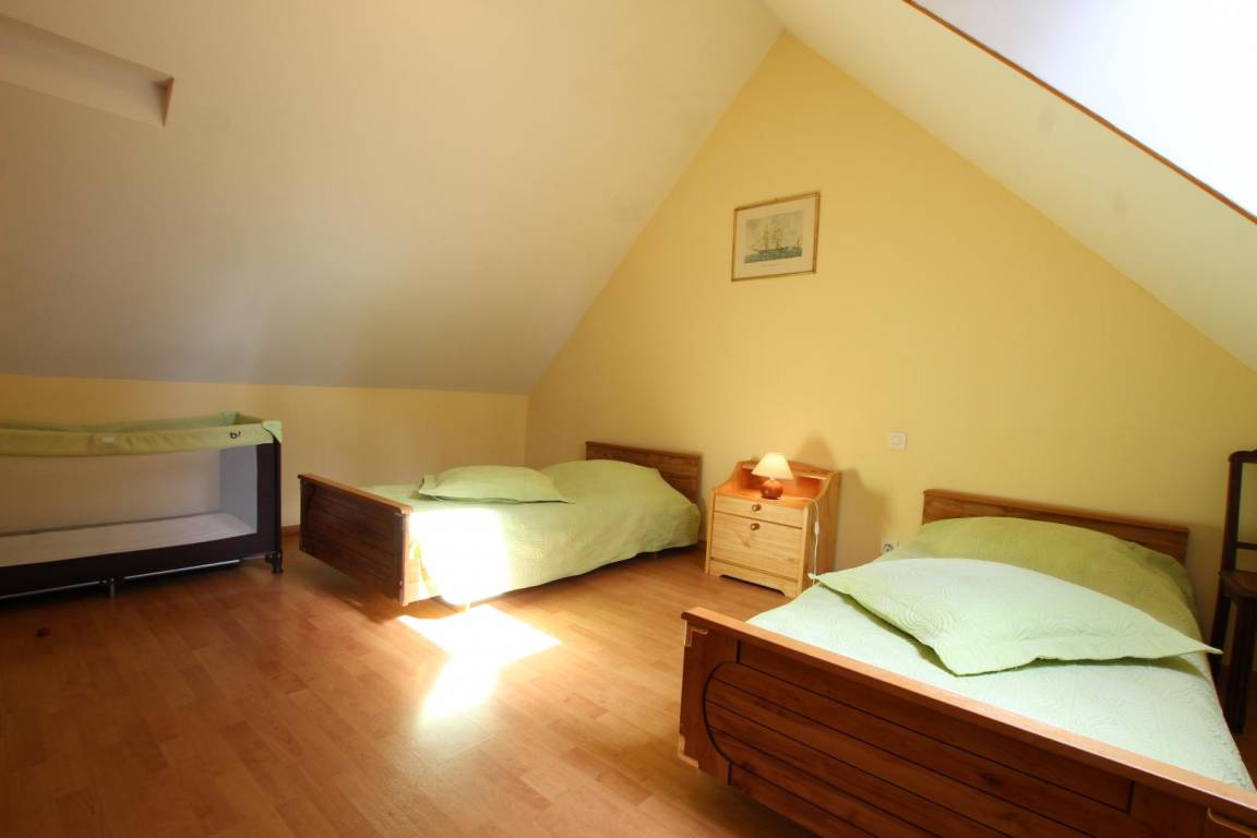 Freistehendes Haus. Wohnzimmer. Küche. Schlafzimmer 1 im Erdgeschoss (1 Doppelbett 160x200 cm). Im Obergeschoss befinden sich ein zweites Schlafzimmer (2 Einzelbetten 90x190 cm) mit Zugang zum Treppenhaus und ein drittes Schlafzimmer (2 Einzelbetten 90x190 cm) mit separatem Treppenaufgang. Ein Kinderbett ist vorhanden. Duschbad und WC befinden sich im Erdgeschoss. Fernseher. WLAN. Waschmaschine. Geschirrspüler. Bettwäsche und Handtücher werden nicht gestellt. Pelletofen (5 €/Sack, zahlbar vor Ort). Elektrische Heizung gegen Aufpreis. Privater, nicht eingezäunter Garten. Gartenmöbel. Grill. Schaukel. Tischtennisplatte.