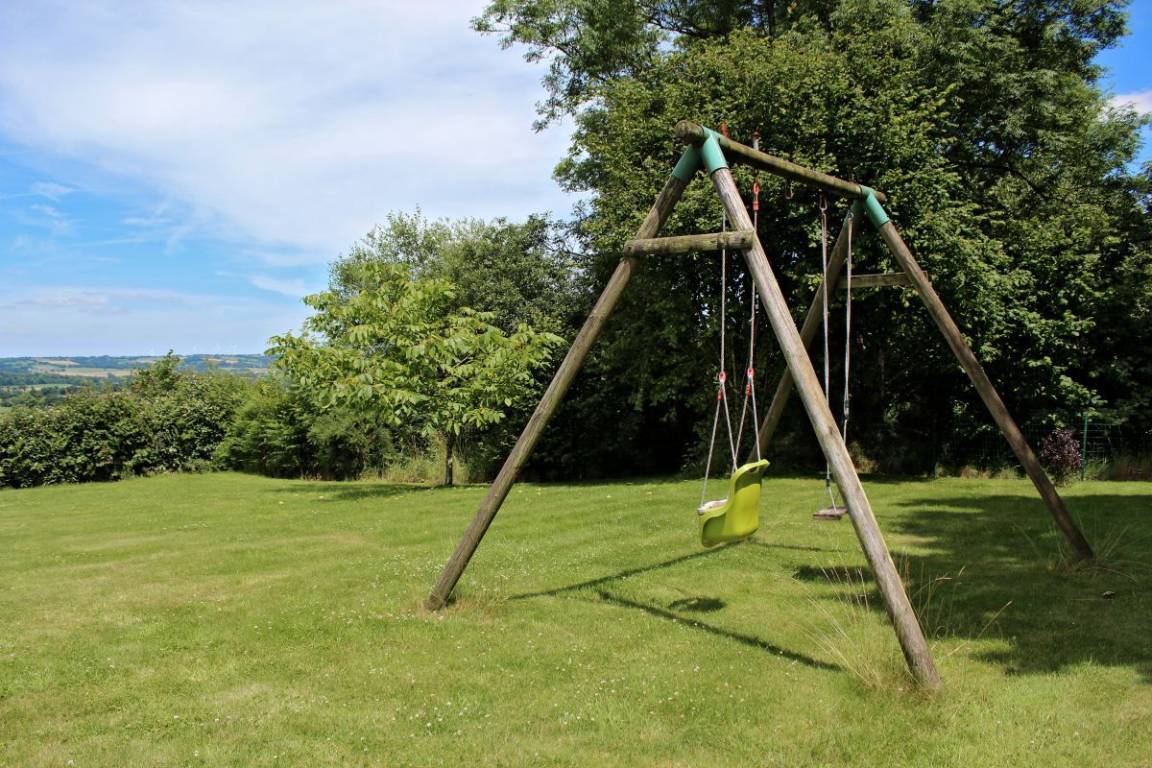 Außenbereich: Innenhof, Terrasse, umzäunter Garten, Schaukeln.