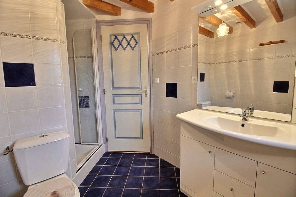 1. Stock: 1 Schlafzimmer (1 Bett 140x190), 1 Schlafzimmer (1 Bett 90x190, 1 Babybett aus Holz), Badezimmer mit Dusche und WC.
