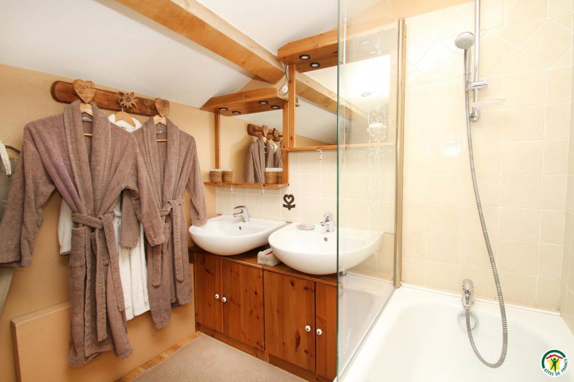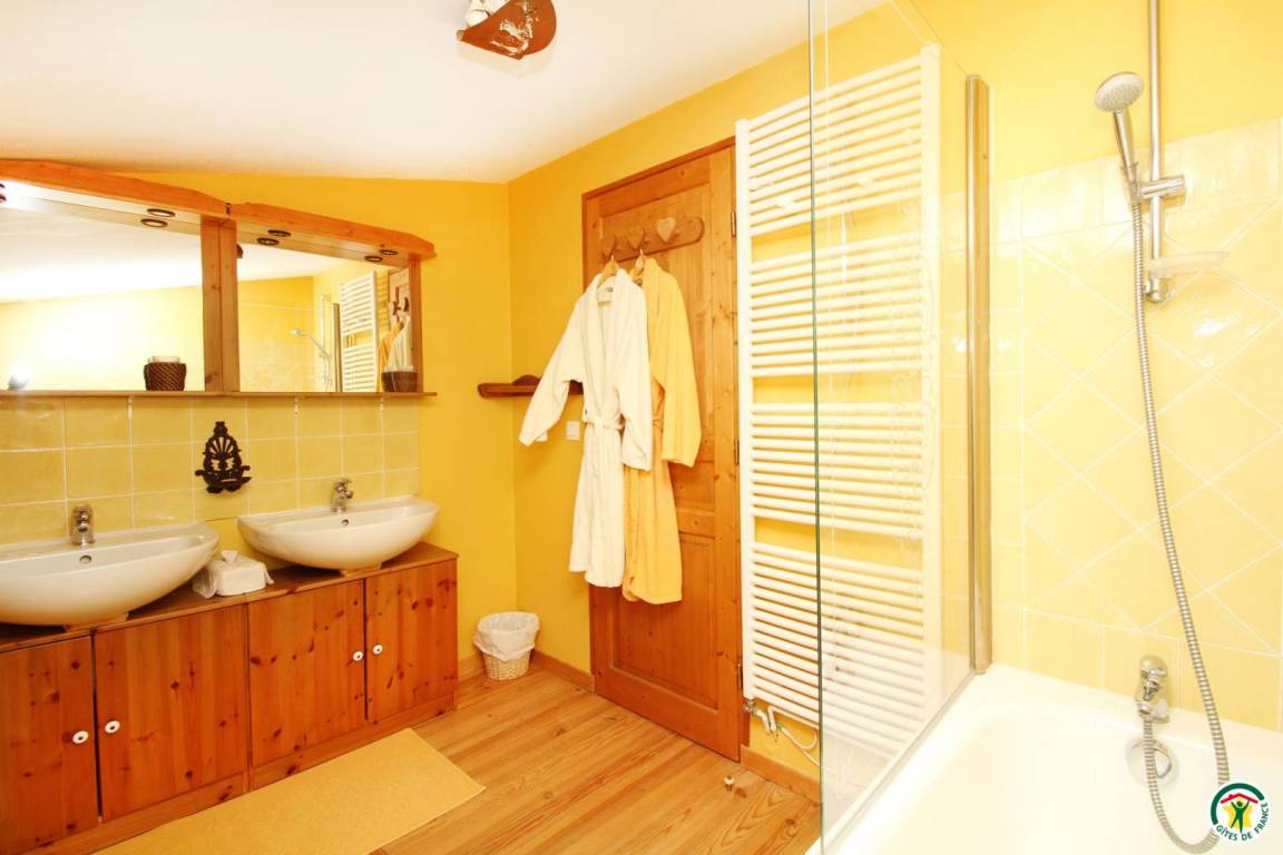 "5 Zimmer im 1. und 2. Stock, jeweils mit eigenem Badezimmer und WC. Spieleraum im 1. Stock. Erdgeschoss: 2 Wohnzimmer: der "Salon Rouge" mit Kamin und der "Salon Jaune" mit Fernseher. Esszimmer mit Kamin, Küche, Waschküche, Vorratsraum. Geschlossene Garage für 5 Fahrzeuge. Für die kleinsten Gäste stehen Ihnen zudem ein Kinderreisebett und ein Hochstuhl zur Verfügung."
