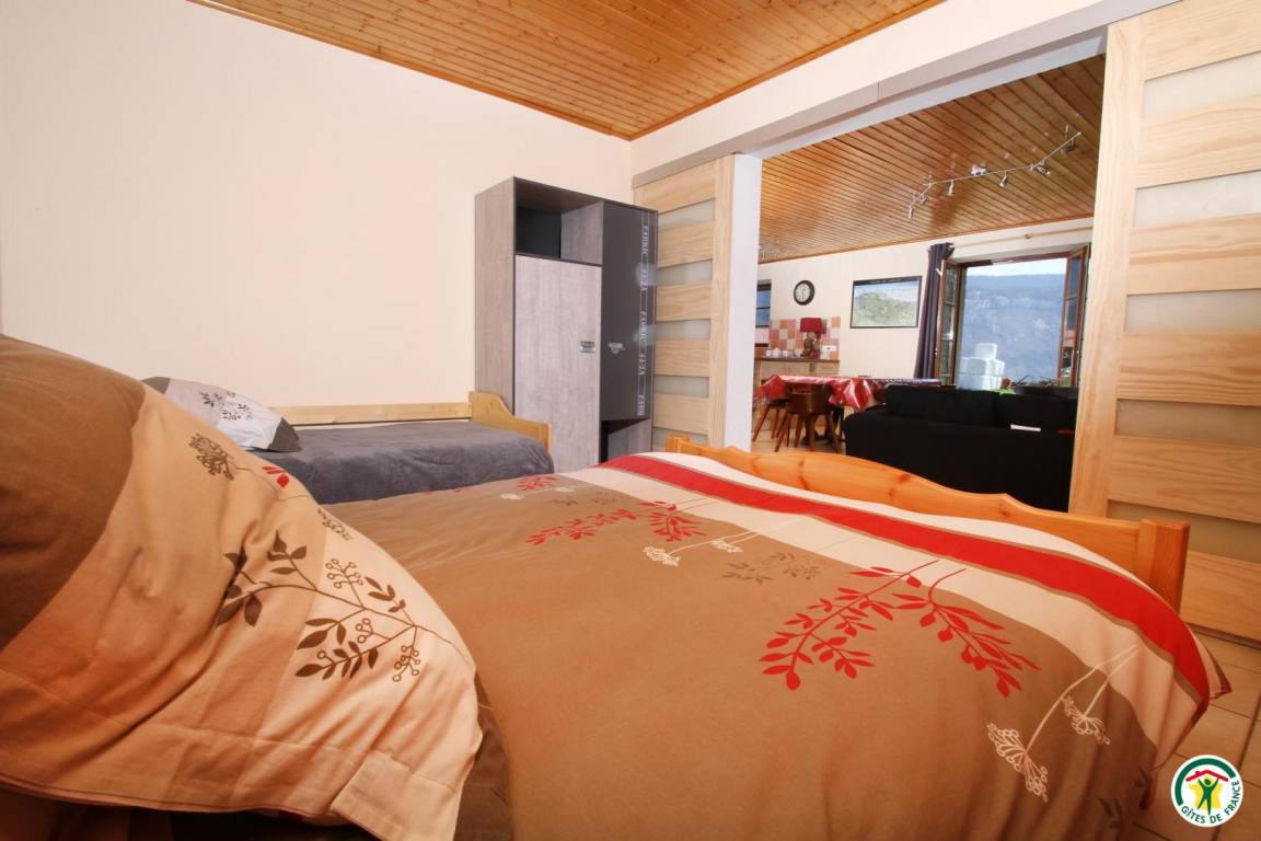 Ferienunterkunft im Erdgeschoss einer großen Berghütte mit 3 weiteren Unterkünften. Großes Wohnzimmer, Esszimmer mit Kamin und komplett ausgestatteter offener Küche. 3 Schlafzimmer (1 Bett 140 x 190 cm und 1 Bett 90 x 190 cm), (1 Bett 140 x 190 cm), (2 Betten 90 x 190 cm). Waschküche. Außenbereich zur gemeinschaftlichen Nutzung.