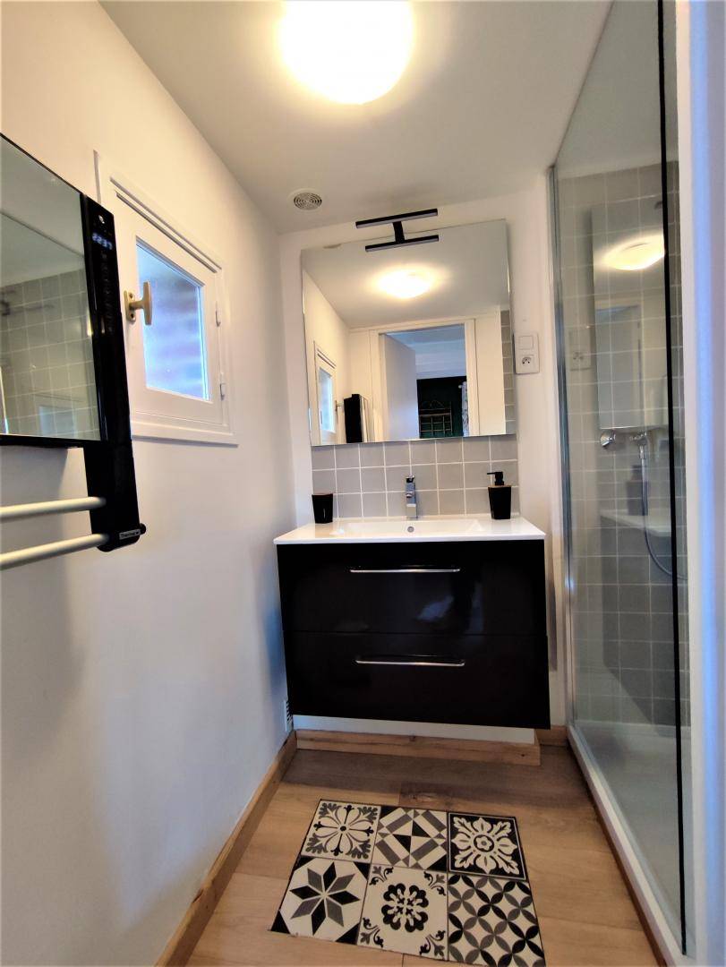 „Lieu calme et charmant. Déco de bon goût et bien équipé. Petit jardin clos privé, pratique pour le chien.“
