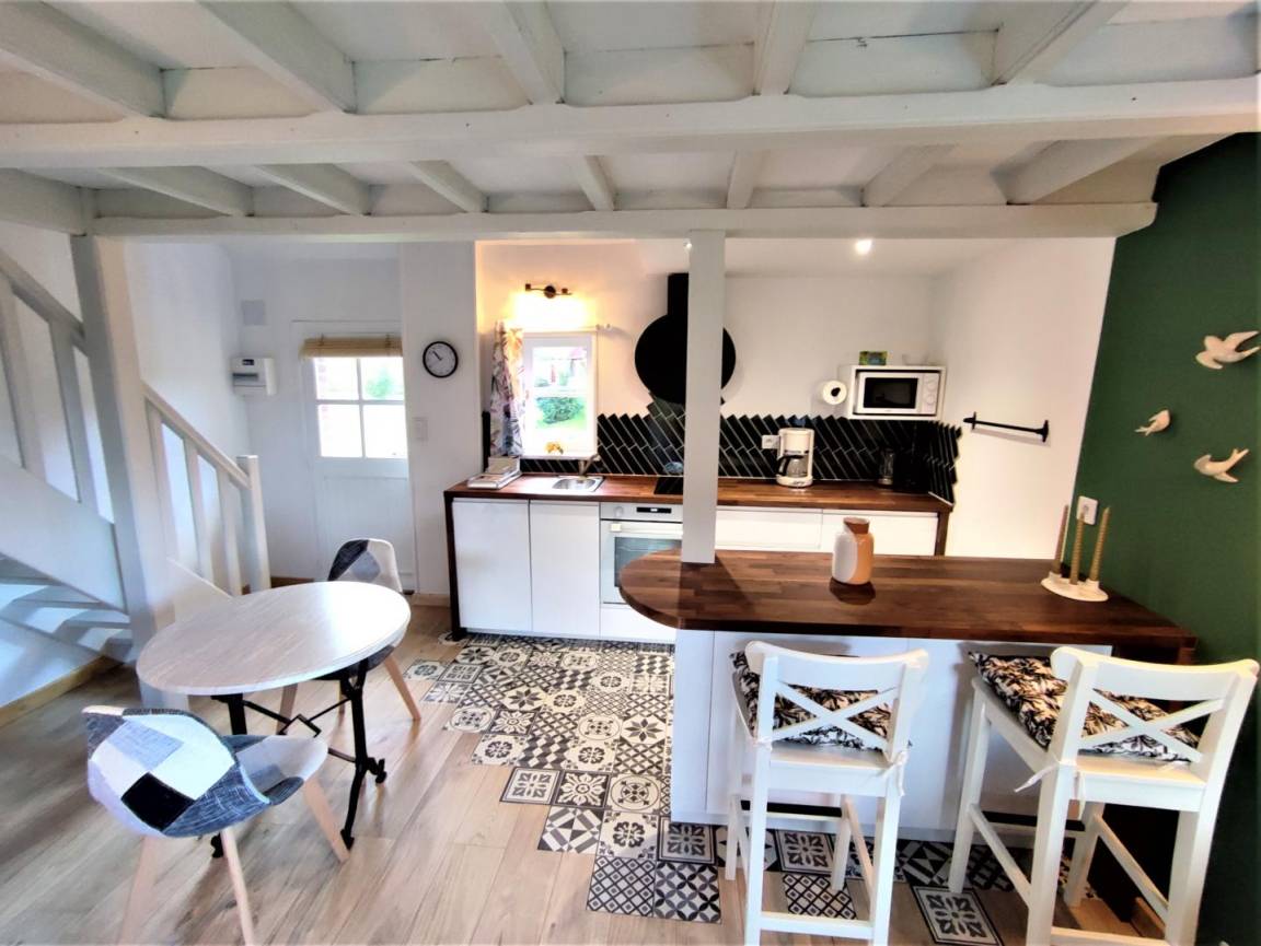 „Dieses reizende Ferienhaus, klein aber mit allem was benötigt wird ausgestattet, ist absolut zu empfehlen. Gemütlich, sehr geschmackvoll eingerichtet, alles ist da. Wir hatten einen privaten Garten, waren ungestört. Nachts hört man Enten, Kauze uns sonst nichts. Wir genossen dies sehr. Die Nähe zum Meer und zum Einkauf waren auch in ca 10 Minuten machbar. Die beiden Vermieter sind äußerst zuvorkommend. Wir konnten kein französich, mit Google Translate konnten wir ein kleines Gespräch führen. Wir benötigten mehr Handtücher, Klarspüler, Waschmaschine, alle unsere Bedürfnisse konnten schnell erledigt werden. Wir haben uns so wohl gefühlt. Absolut empfehlenswerte Ferienunterkunft.“