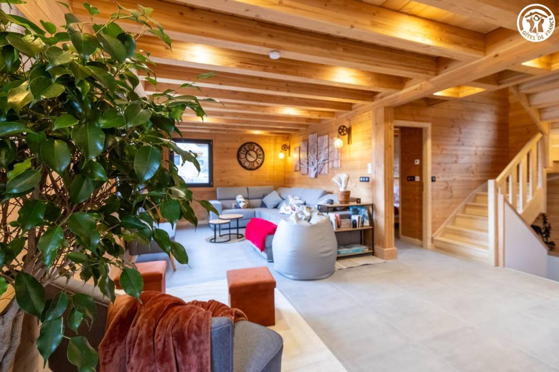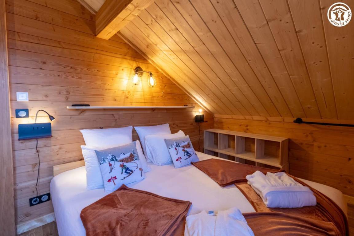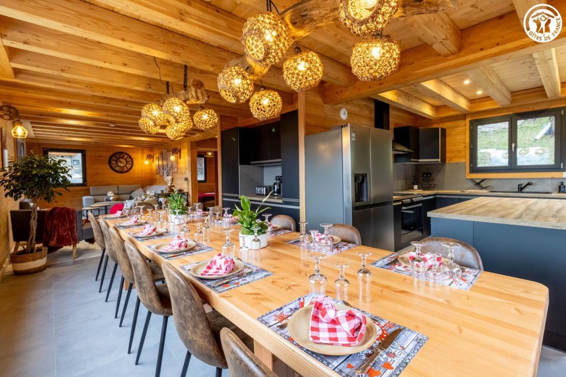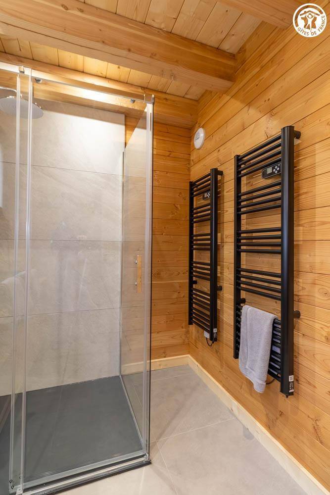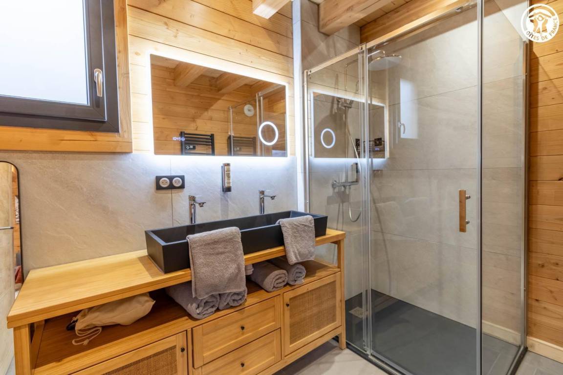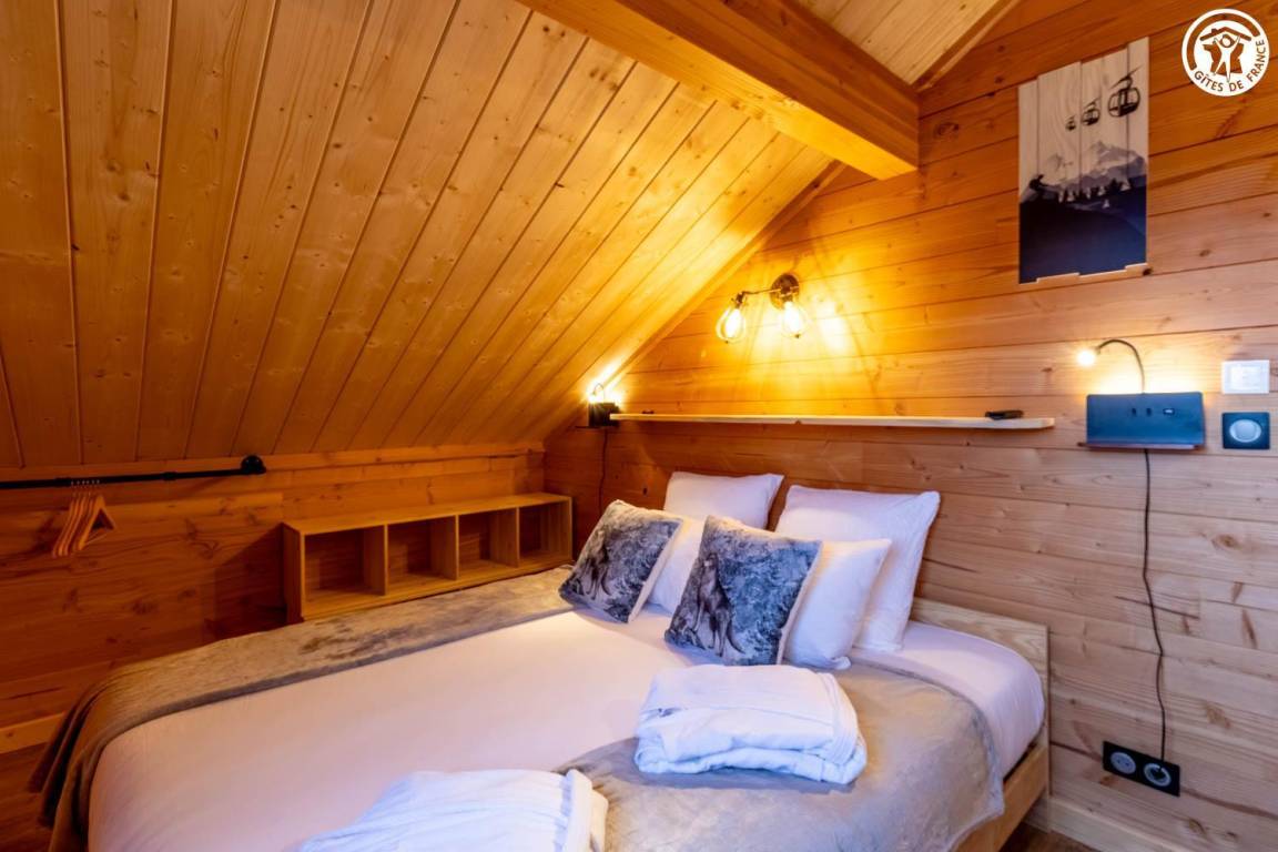 Dieses moderne Chalet vereint Komfort und Charakter. Es verfügt über ein großes, helles Wohnzimmer mit offener Küche. Große, nach Süden ausgerichtete Erkerfenster bieten einen atemberaubenden Blick auf die Berge und die Massive von Lauzière, Belledonne und Arves. Dank der Verwendung edler Materialien ist die Bergatmosphäre warm und behaglich. Die moderne und authentische Inneneinrichtung lädt zum Entspannen und Geselligkeit ein.