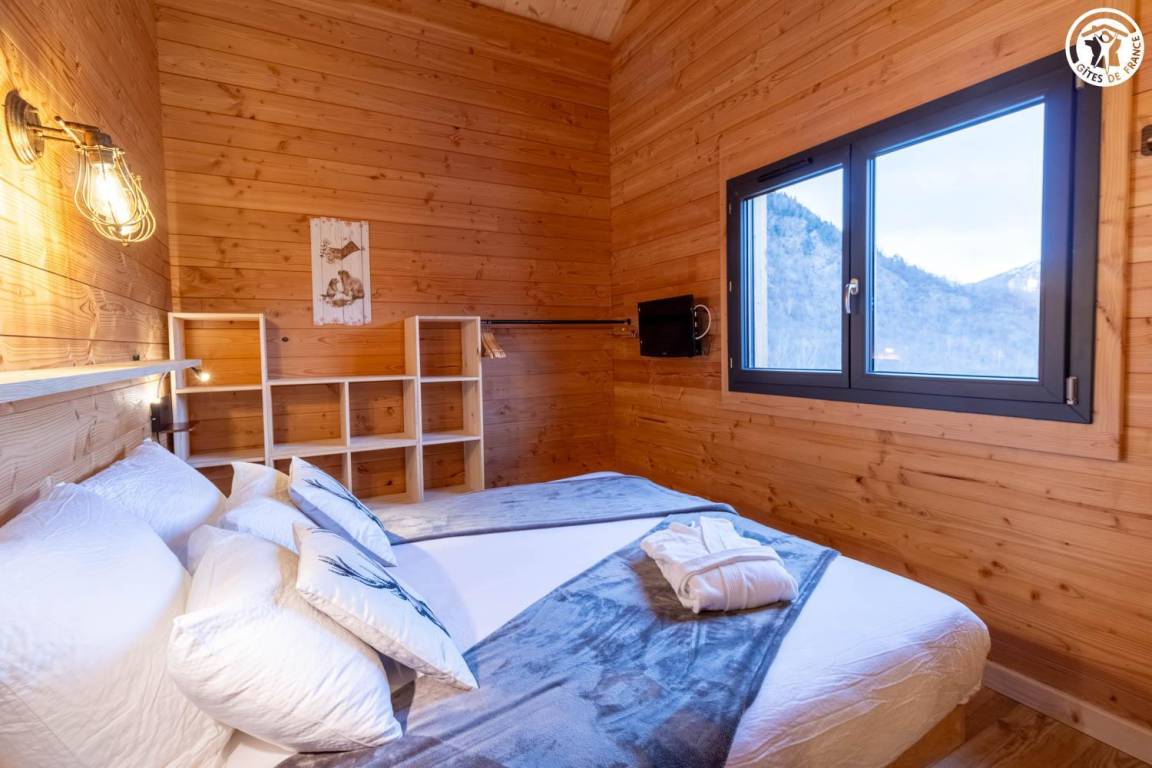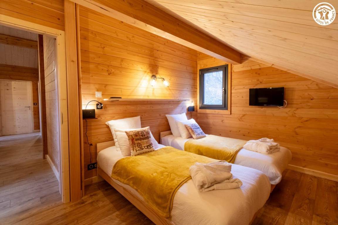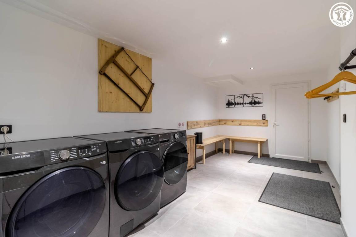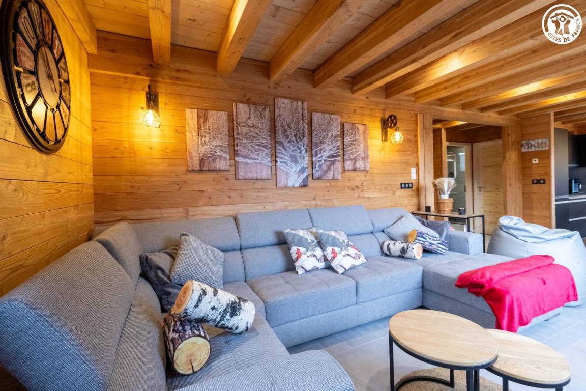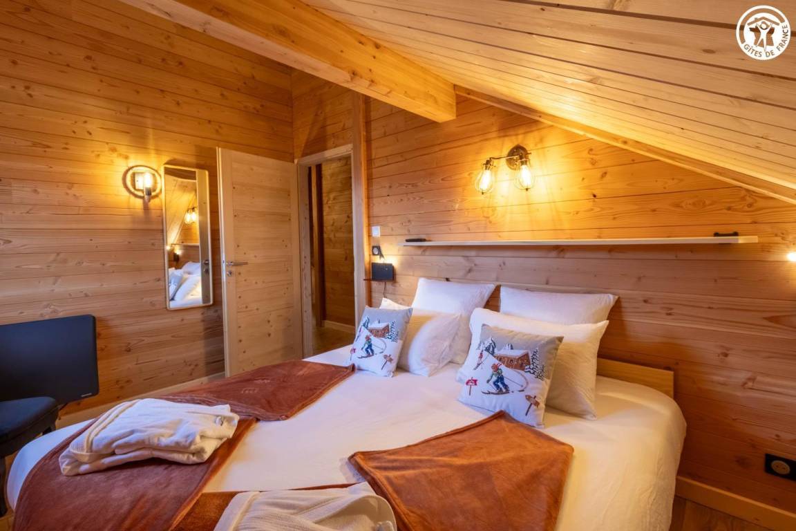 Dieses moderne Chalet vereint Komfort und Charakter. Es verfügt über ein großes, helles Wohnzimmer mit offener Küche. Große, nach Süden ausgerichtete Erkerfenster bieten einen atemberaubenden Blick auf die Berge und die Massive von Lauzière, Belledonne und Arves. Dank der Verwendung edler Materialien ist die Bergatmosphäre warm und behaglich. Die moderne und authentische Inneneinrichtung lädt zum Entspannen und Geselligkeit ein.