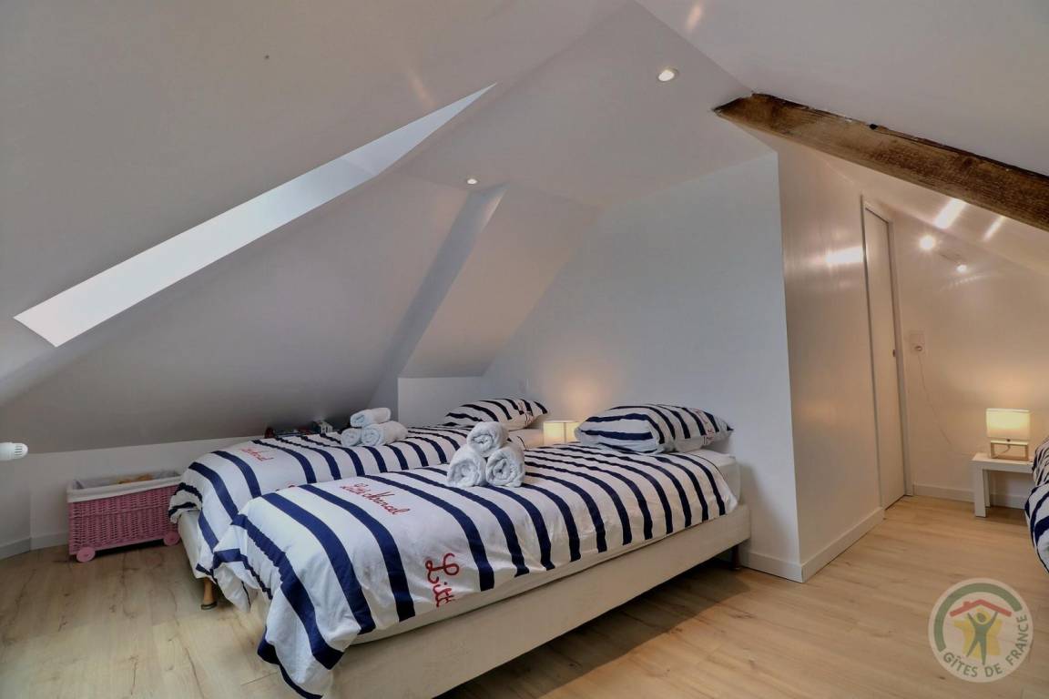 Die Räume sind so organisiert, dass sie ein angenehmes Wohnumfeld für bis zu 11 Personen gewährleisten. Sein geräumiges und helles Wohnzimmer öffnet sich auf eine Terrasse nach Südwesten und einen Balkon bei Sonnenaufgang. Im 1. Stock: Wohnzimmer mit offener Küche zum Essbereich und Wohnzimmer, ein Schlafzimmer mit einem 140x190-Bett und zwei Schlafzimmer mit jeweils einem 160x200-Bett, ein Badezimmer, eine separate Toilette. Im 2. Stock: ein Schlafzimmer mit zwei Betten 80x200, ein Schlafzimmer mit 3 Betten 80x200. Ein Badezimmer mit Waschmaschine und eine separate Toilette.