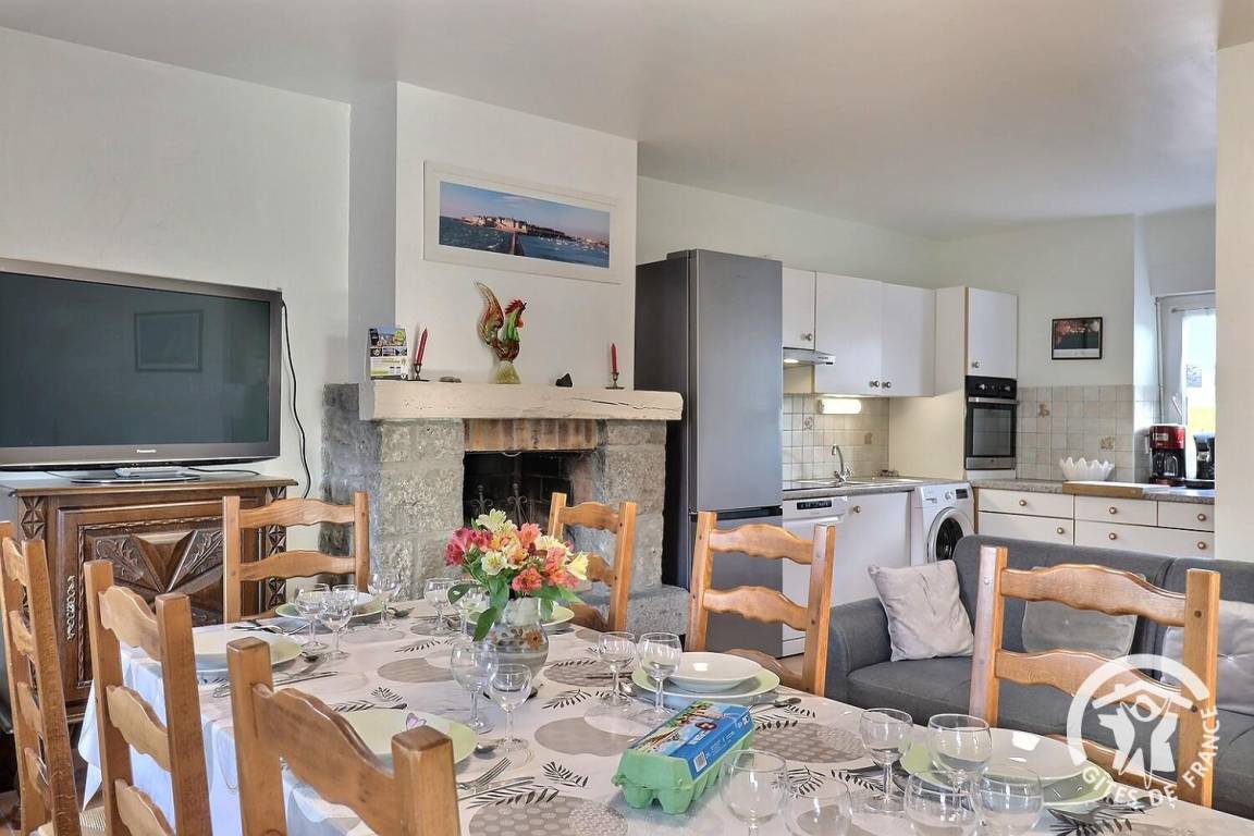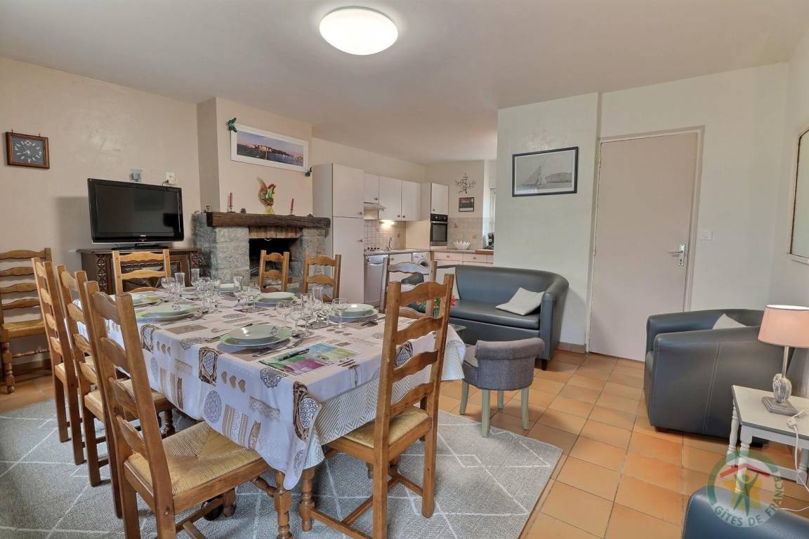 Im EG: Esszimmer mit Küche und Wohnzimmer mit Kamin, ein Schlafzimmer mit 1 Doppelbett 140 und 1 Einzelbett 90 mit eigenem Badezimmer. Im Stockwerk: ein Schlafzimmer mit einem Bett 140 und einem Badezimmer mit WC, ein Schlafzimmer mit 3 Betten 90 und mit Badezimmer mit WC. WLAN im Gemeinschaftsraum. Elektrische Heizung im Mietpreis inbegriffen. Eigene Terrasse mit Gartenmöbeln und Grill. Parkplatz vor Ort.