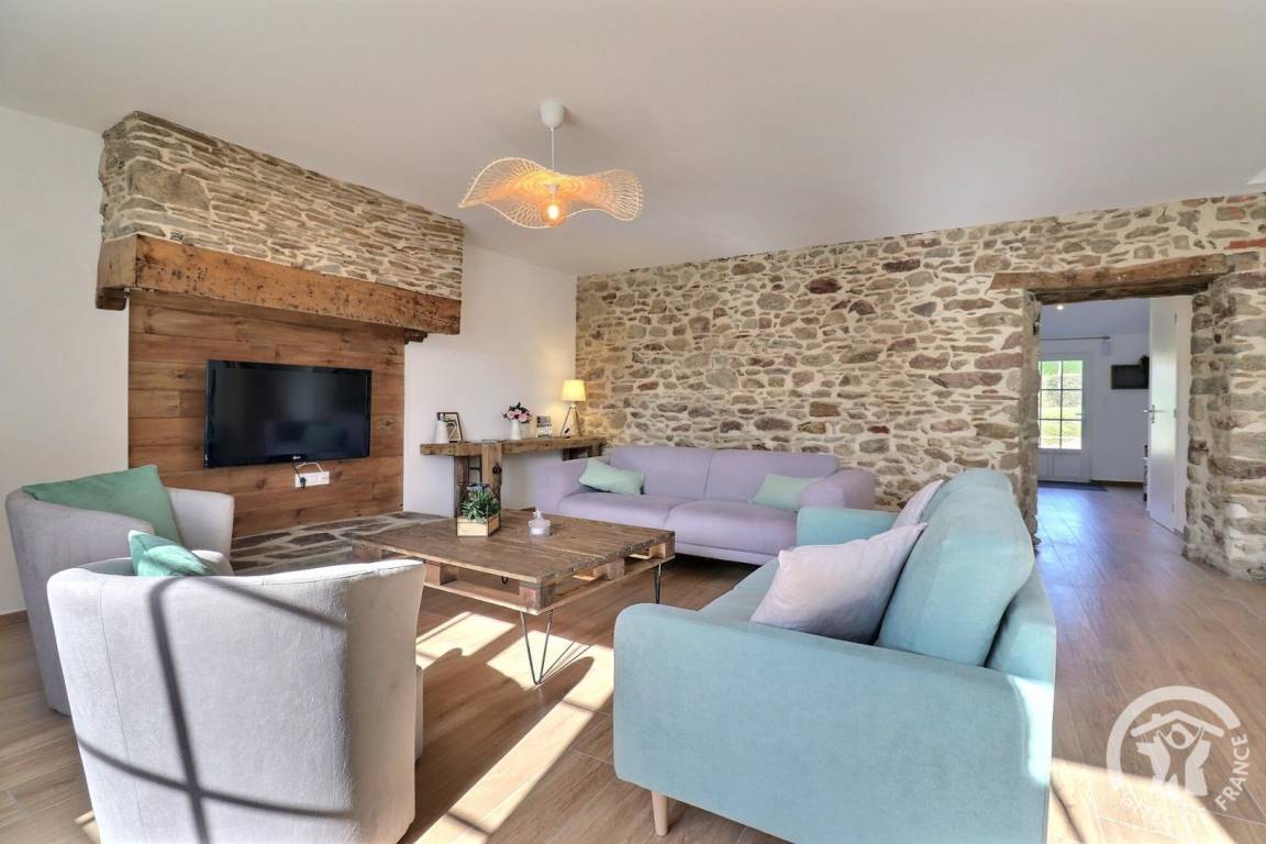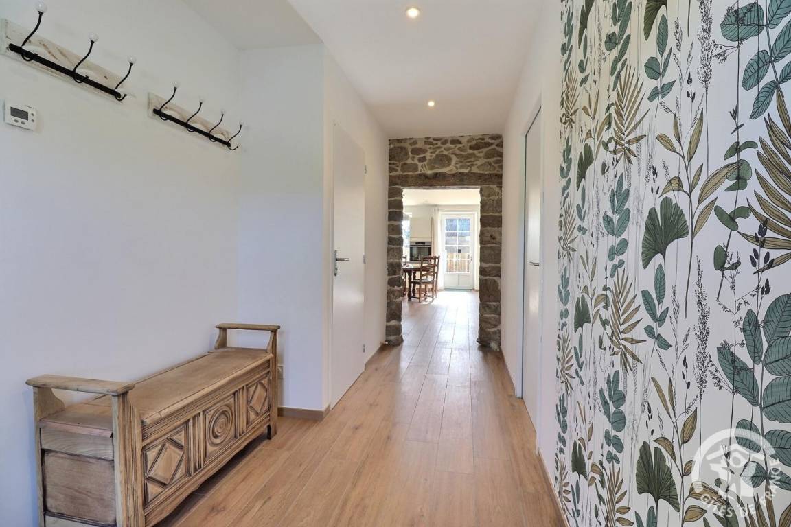 Dieses Cottage, in dem Authentizität und Eleganz aufeinandertreffen, empfängt Sie dank seiner freiliegenden Balken und Steine, die jedem Raum einen Hauch von Charakter verleihen, in einer warmen Atmosphäre.