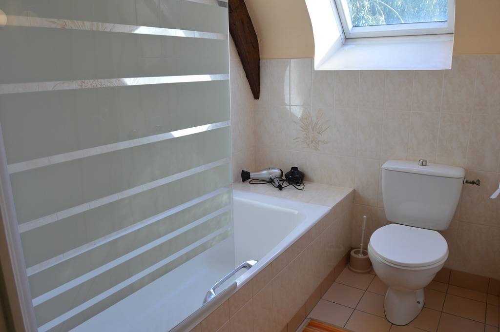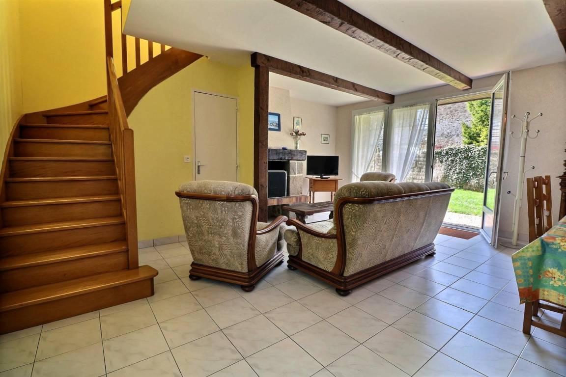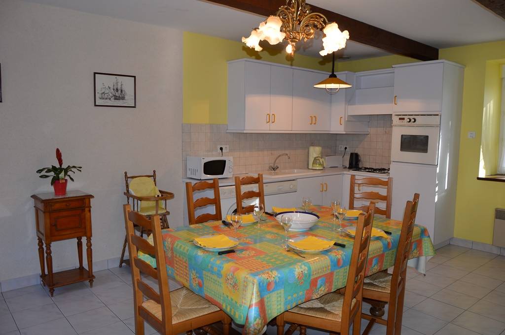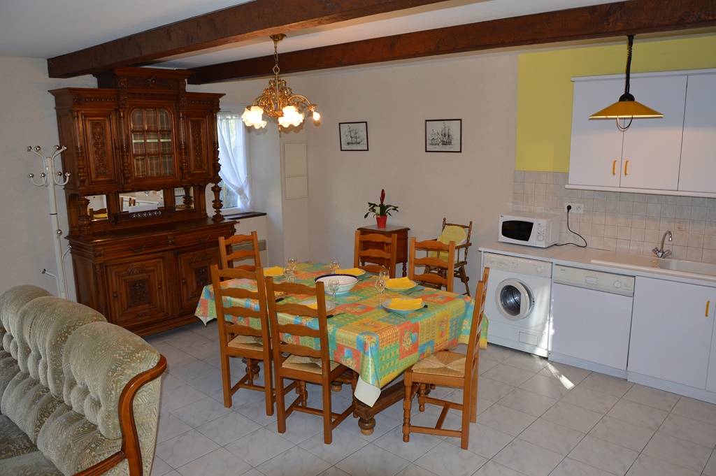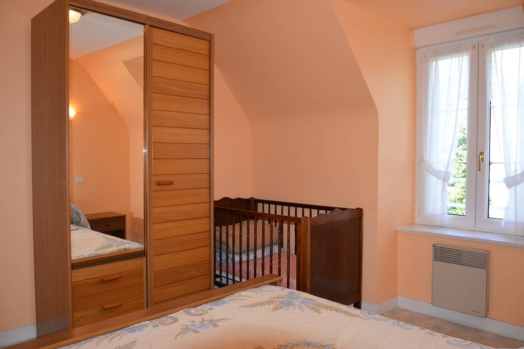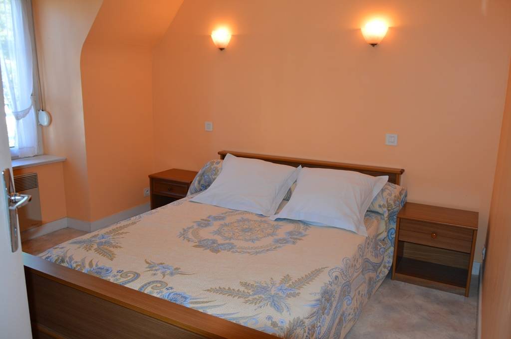 Der komfortable und geräumige Innenraum wird Ihnen gefallen. Im Erdgeschoss: Wohnzimmer mit Kamin, Einbauküche - WC. Obergeschoss: ein Schlafzimmer (1 Doppelbett 140), ein Schlafzimmer (1 Doppelbett 140), ein Schlafzimmer (2 Einzelbetten 90 und ein Kinderbett), Badezimmer - WC. Elektroheizung.