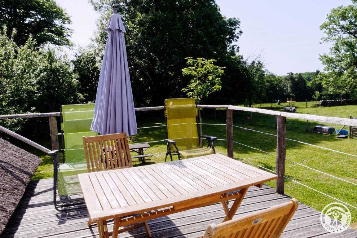 „Site insolite en toit de chaume dans un hameau calme, aux milieu des bois et des champignons le brame du cerf que nous entendions en est la preuve“