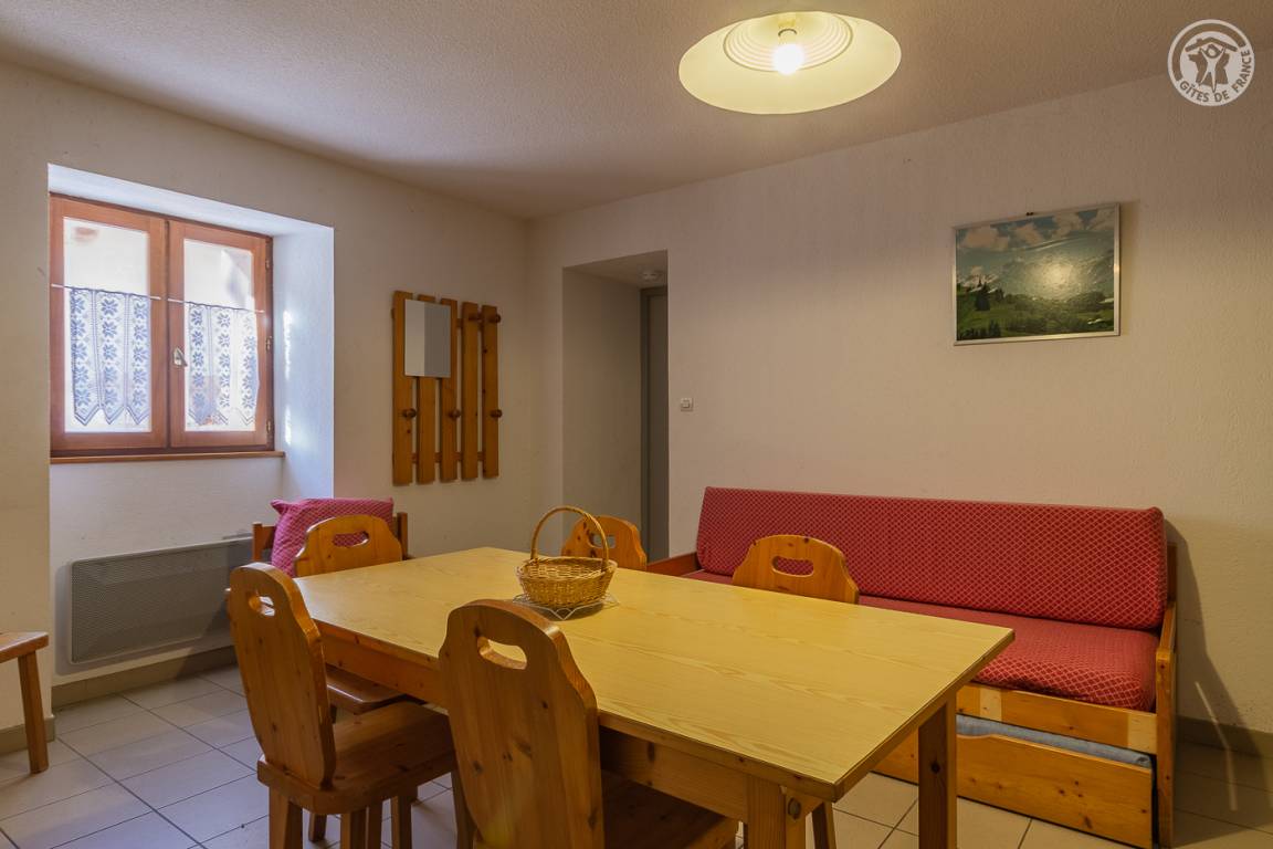 3 Unterkünfte im Haus, darunter ein Gemeinschaftsraum. Gemeinsamer Eingang. Erdgeschoss + 1. Stock (Zugang zu Fuß über eine Gasse für 150 m vom Parkplatz aus): Wohnküche, Wohnzimmer, 1 Schlafzimmer (1 Doppelbett; 2 Etagenbetten für 1 Person), Badezimmer (Badewanne), separates WC. Gemeinsame Waschmaschine. Gemeinsames Grundstück vor der Hütte.
