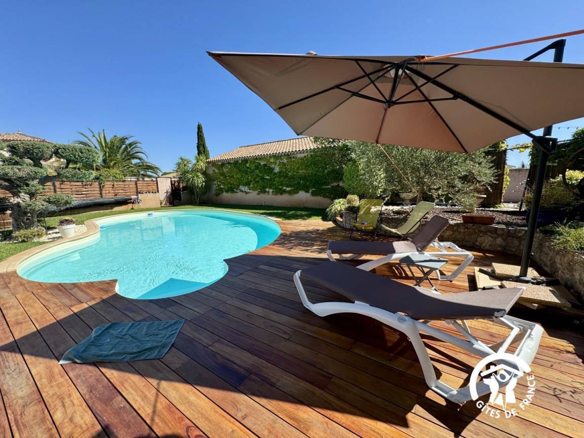 „Nous avons passé un séjour merveilleux dans cette maison de vacances charmante et décorée avec beaucoup de goût. Le jardin est soigné et la piscine chauffée est impeccable, idéale pour se détendre. La literie est confortable et la climatisation très appréciable par temps chaud. Un grand merci aux propriétaires, adorables et passionnés par ce qu’ils font, qui nous ont même offert un petit présent à notre arrivée et ont rendu nos vacances encore plus agréables. L’emplacement est parfait pour les balades à pied ou à vélo le long du Canal du Midi, avec le joli village du Somail à proximité. Rien ne manque dans la maison, et la propreté du gîte, du jardin et de la piscine est irréprochable. Nous reviendrons avec grand plaisir !“