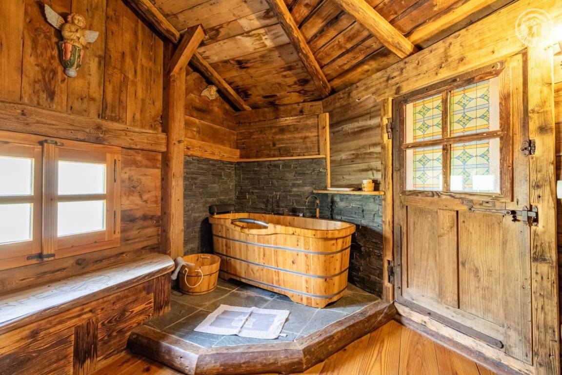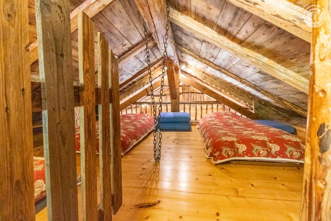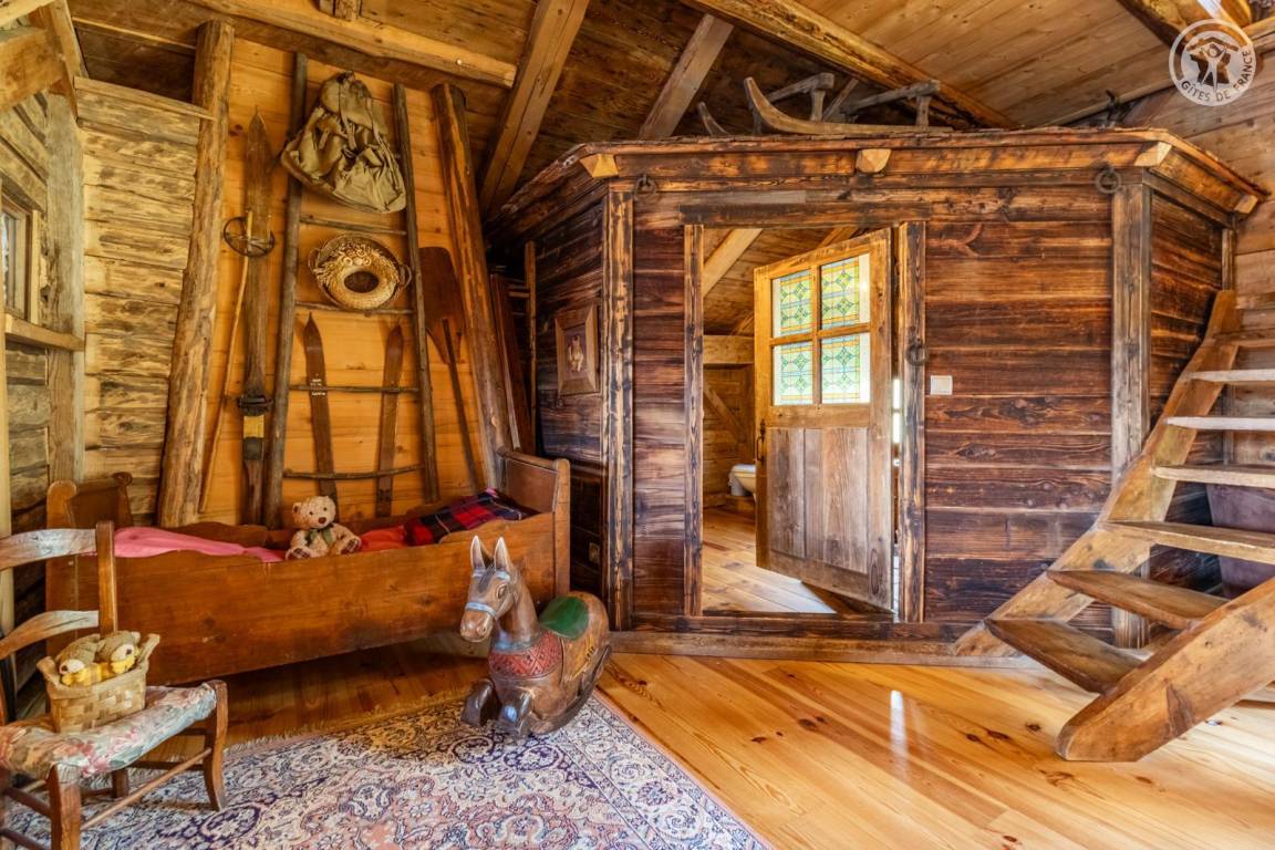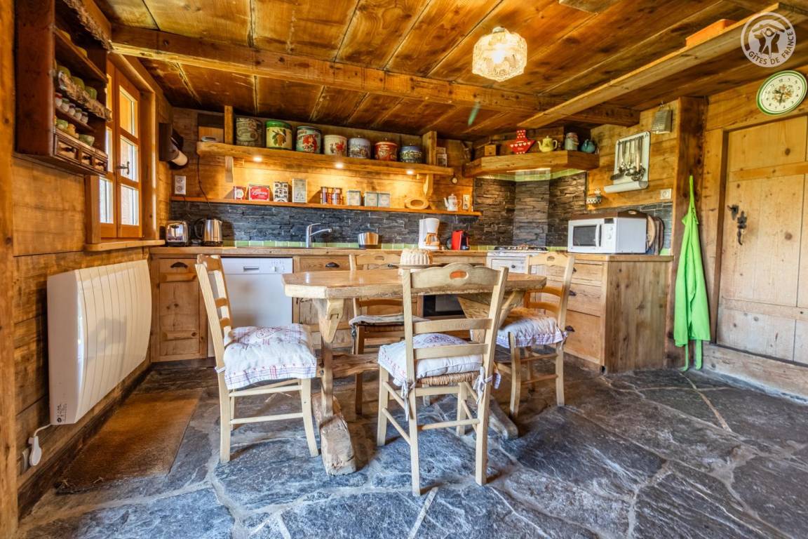 Alpenchalet mitten in der Natur, inmitten einer 10 Hektar großen Alm, am Ende eines Weges. Vom Dorf aus erreichbar über 7 km Asphaltstraße und dann 3 km befahrbaren Schotterweg (fragen Sie die Eigentümer). Auf 3 Ebenen. Im Erdgeschoss: Wohnzimmer, Küche und Speisekammer, 1 Schlafzimmer mit Zugang zur Balkonterrasse (1 Doppelbett 140 x 190 cm / 1 Einzelbett 90 x 190 cm - Höhe wegen der Balken stellenweise weniger als 1,80 m)), Badezimmer (Dusche, Badewanne und WC). Im 1. Stock: großer offener Raum mit Fernsehraum im Zwischengeschoss, 2 durch einen Vorhang abgeschlossene Schlafzimmer (1 Doppelbett 140 x 190 cm / 1 Doppelbett 160 x 200 cm), Badezimmer (Badewanne und WC). Im 2. Stock (Höhe weniger als 1,80 m): 1 Schlafsaal im Zwischengeschoss (4 Einzelbetten 90 x 190 cm).