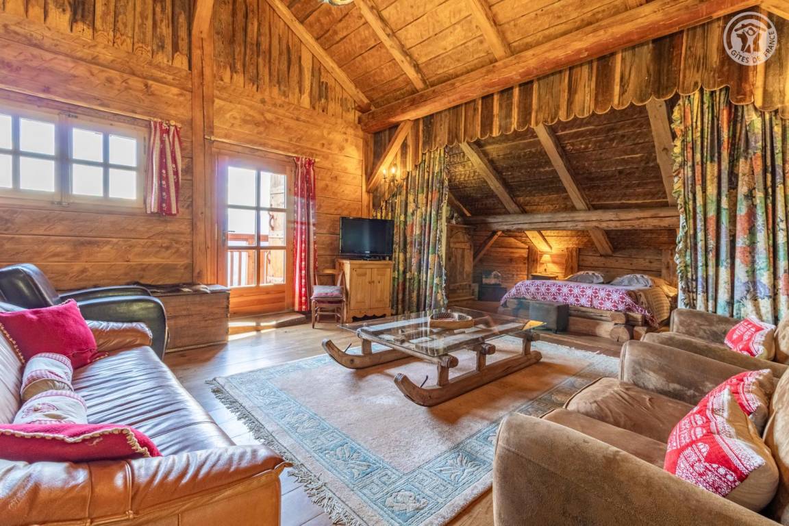Ein authentisches Chalet mit unglaublichem Charakter, hoch oben auf einer 10 Hektar großen Alm auf 1.450 m Höhe, mit einem außergewöhnlichen Panoramablick auf den Mont Blanc. La Reine des Aravis macht seinem Namen alle Ehre und lädt Sie ein, ein intensives und abgeschiedenes Erlebnis auf einem riesigen Grundstück mit Lagerfeuer, Grill und Picknicktischen zu genießen. Der Innenbereich, bemerkenswert renoviert und dekoriert, bietet vier Schlafbereiche sowie zwei gemütliche Lounges: eine um ein knisterndes Kaminfeuer, die andere zum Entspannen mit einem Fernseher. Ein wahres Paradies für alle, die absolute Ruhe suchen, weit weg von Hektik und Trubel, umgeben vom beruhigenden Klang der Glocken der grasenden Herden. Ein Abenteuer, das sich lohnt, erreichbar nach 3 km Bergweg, der für erfahrene Fahrer mit Kraftfahrzeugen geeignet ist, oder zu Fuß für die Abenteuerlustigsten.