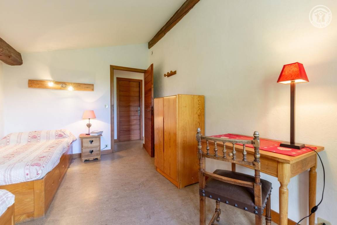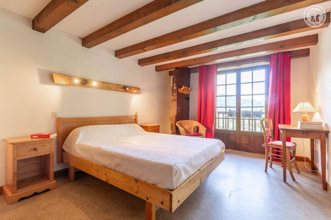 Im 1. Stock eines traditionellen Chalets, mit ganzjähriger Unterbringung im Erdgeschoss und weiteren Touristenunterkünften auf derselben Etage. Zugang über eine gemeinsame Eingangshalle und Innentreppe. Wohnzimmer mit Balkon, Küche, 2 Schlafzimmer (1 Doppelbett 140x190 cm / 2 Einzelbetten 90x190 cm) mit Balkon, Badezimmer (Dusche), separates WC. Großer gemeinsamer offener Garten. Garage für Ski und Fahrräder. Privatparkplatz vor der Unterkunft (2 Parkplätze).
