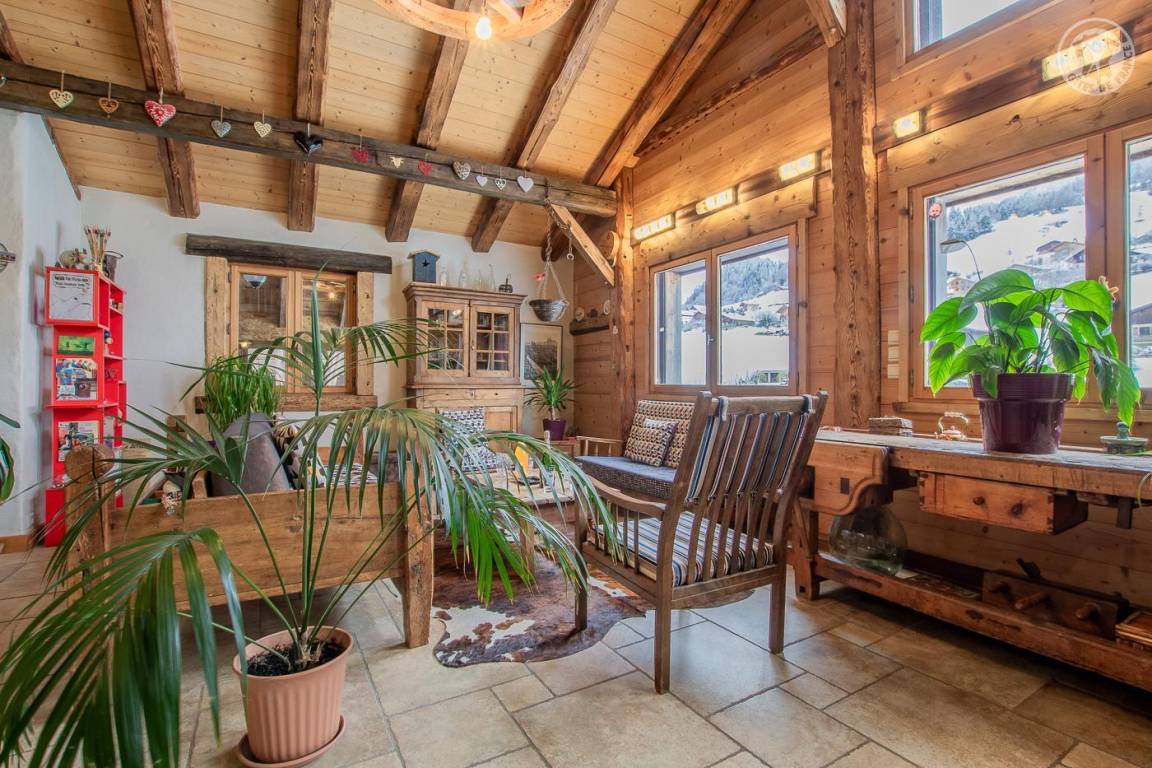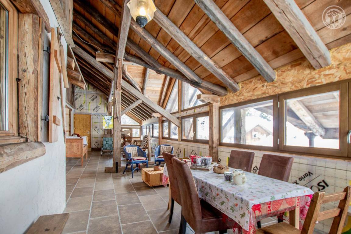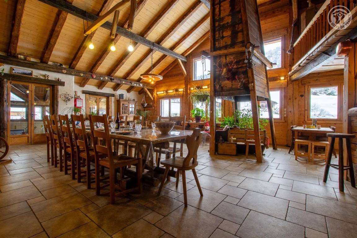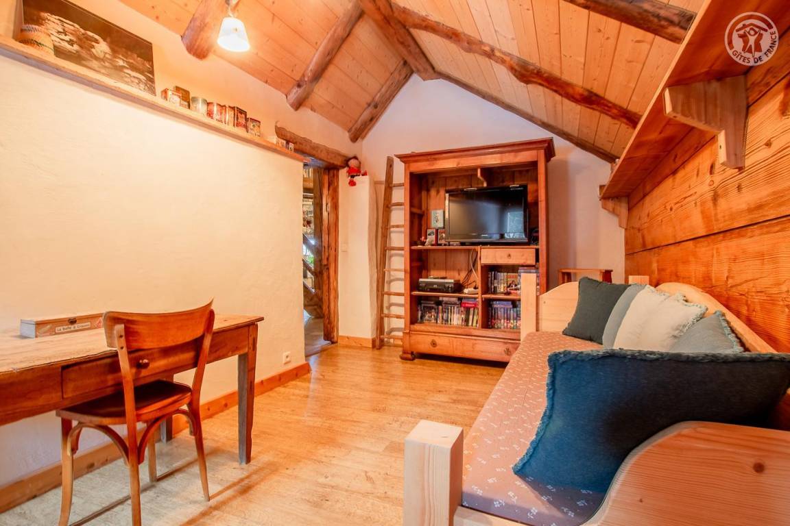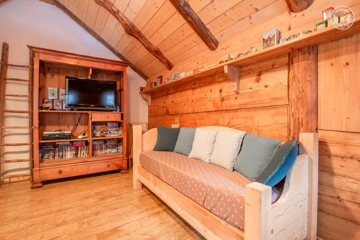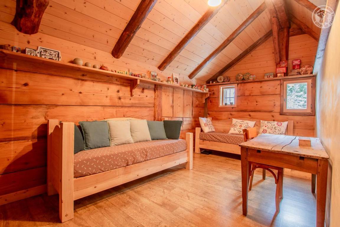 Wohnung auf 3 Ebenen in einem Chalet inklusive ganzjähriger Unterbringung im Erdgeschoss. Erdgeschoss: Eingangshalle, Waschküche (Waschmaschine). 1. Etage: Eingang, 2 Schlafzimmer, eines mit Ankleidezimmer (1 Doppelbett 140x190 cm / 1 Doppelbett 140x190 cm), Badezimmer (Dusche), separates WC, TV-Lounge, überdachte Terrasse von 43m². 2. Etage: Zwischengeschoss mit Spielbereich, 3 Schlafzimmer (4 Einzelbetten 90x190 cm, davon 2 Etagenbetten / 1 Doppelbett 140x190 cm / 1 Doppelbett 140x190 cm), Badezimmer (Dusche), separates WC. Erdwärme – Fußbodenheizung. Gemeinsamer Garten mit dem Eigentümer. Essbereich im Freien. Privatparkplatz vor der Unterkunft. Alles inklusive (Bettwäsche, Handtücher, Endreinigung).