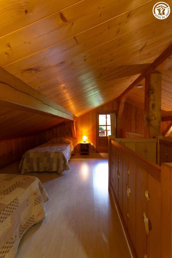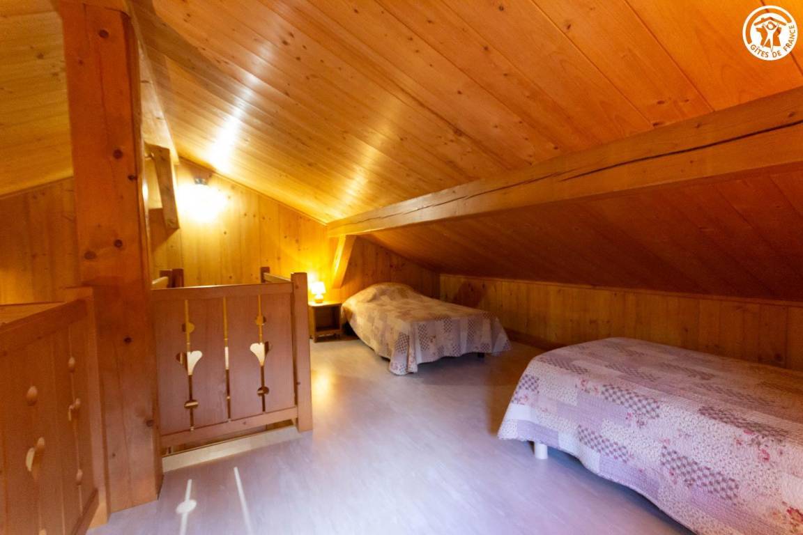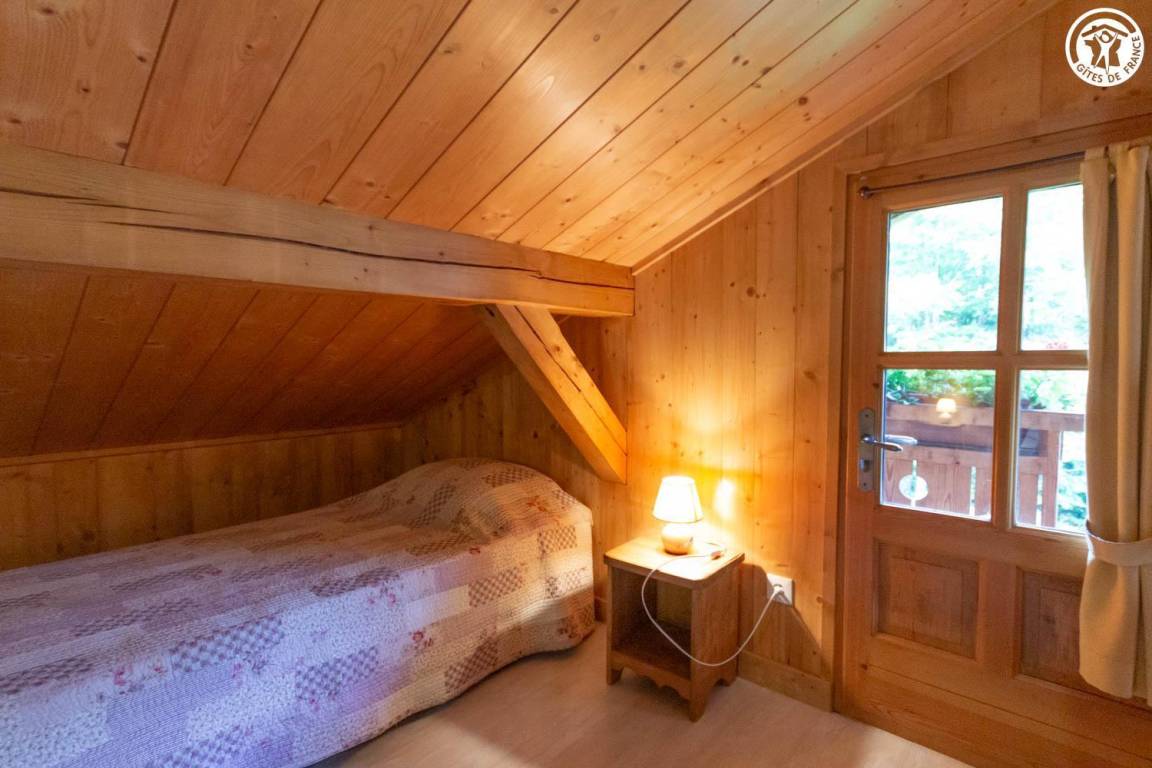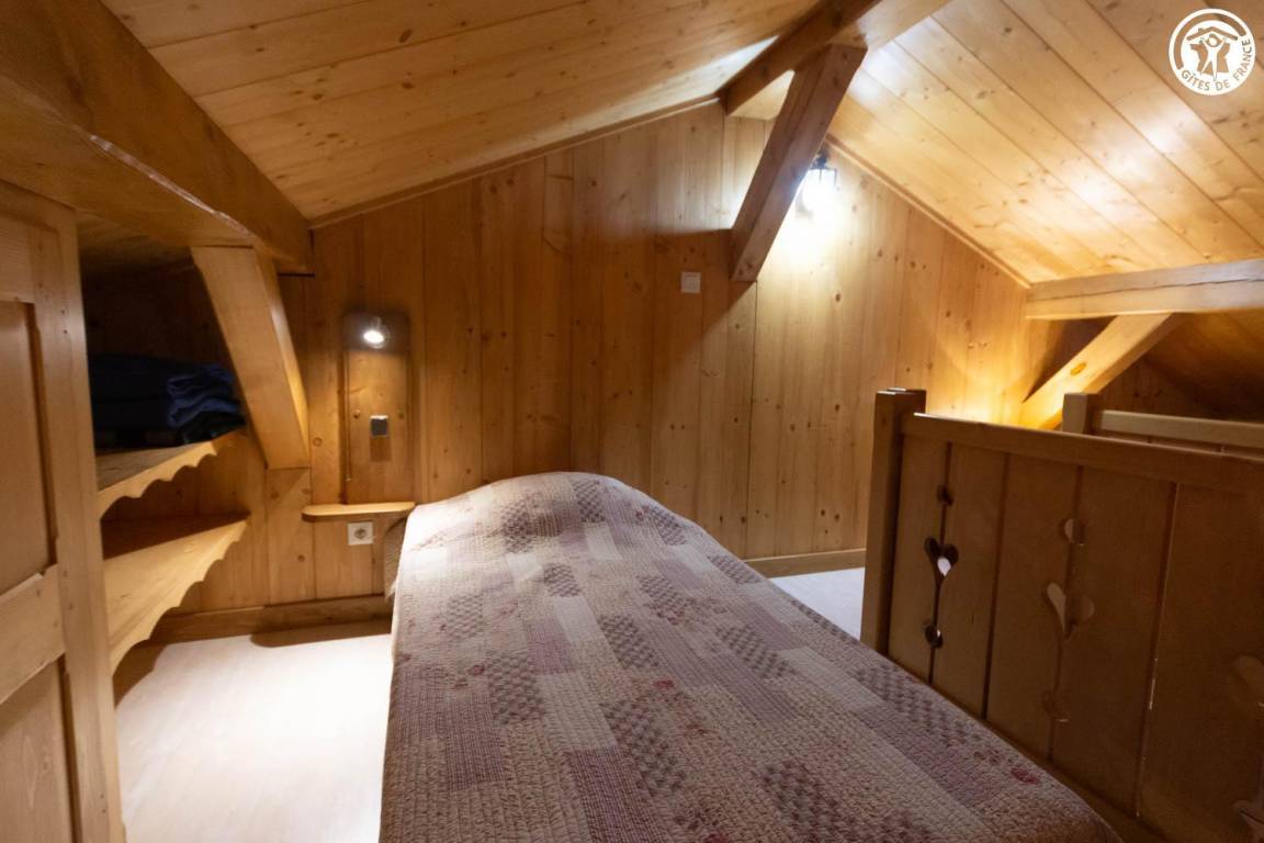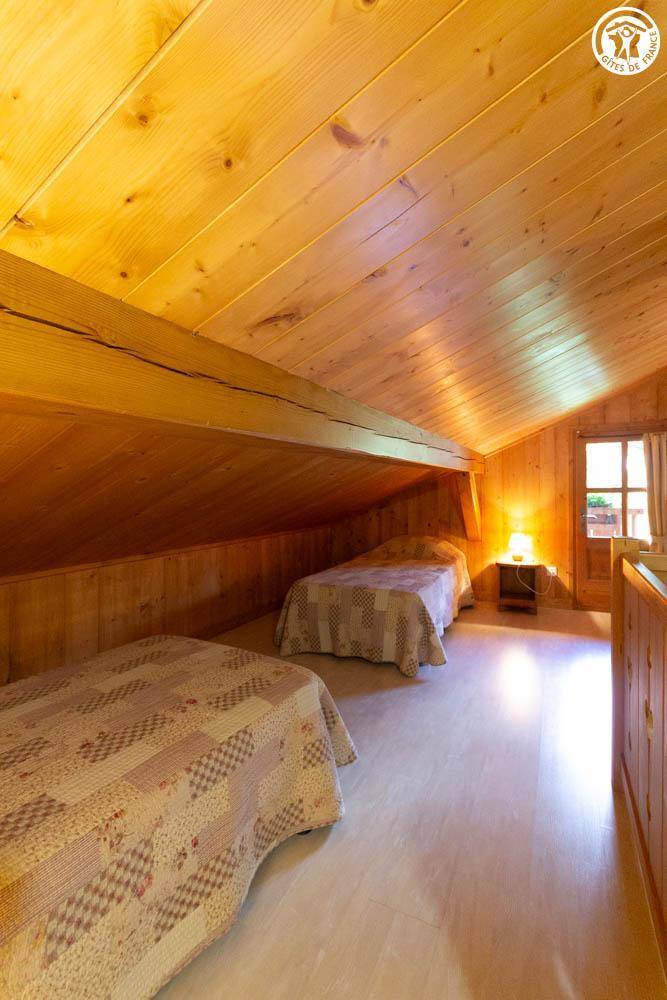 Freistehendes Chalet mit Mezzanin in einer Anlage mit 3 weiteren Chalets, die ganzjährig vermietet werden. Erdgeschoss: Wohnzimmer - Küche, Badezimmer (Dusche), separates WC, 1 Schlafzimmer (1 Doppelbett 140x190 cm). Mezzanin: 3 Einzelbetten 90x190 cm. Terrasse vor dem Ferienhaus. Grundstück. Gemeinsamer Grill. Parkplatz vor dem Ferienhaus.