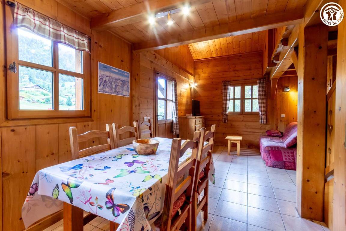 Komfortables, geräumiges und gut ausgestattetes Ferienhaus, ideal für 5 Personen. Funktional und einladend bietet es alles, was Sie für einen angenehmen Aufenthalt im Herzen der Berge benötigen. Großer Außenbereich und schöne Terrasse mit freiem Blick auf die Aravis-Gipfel.