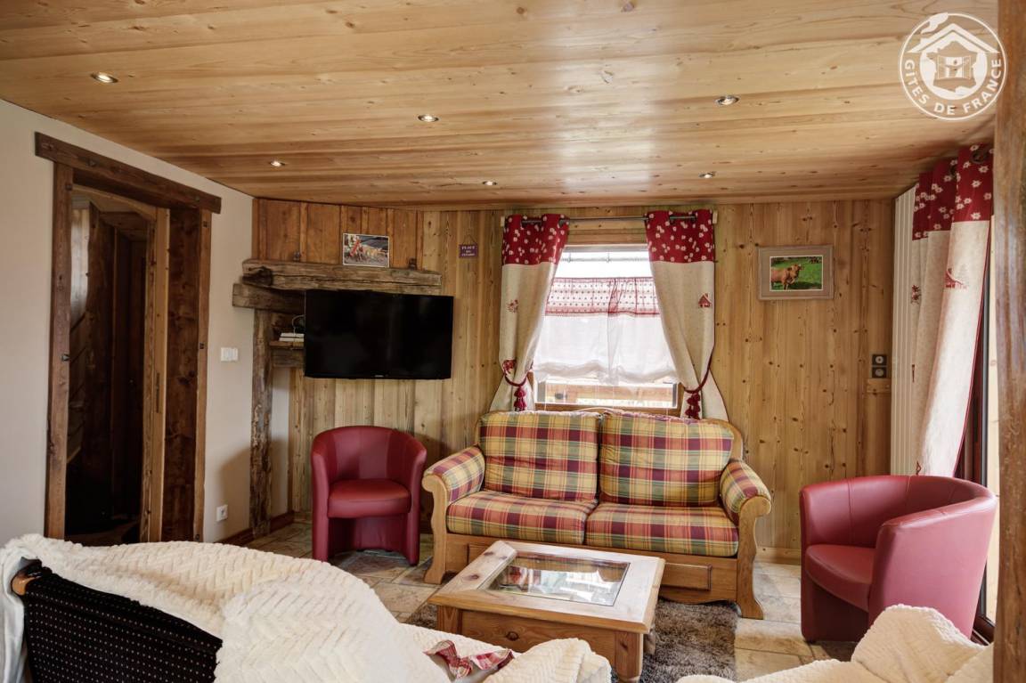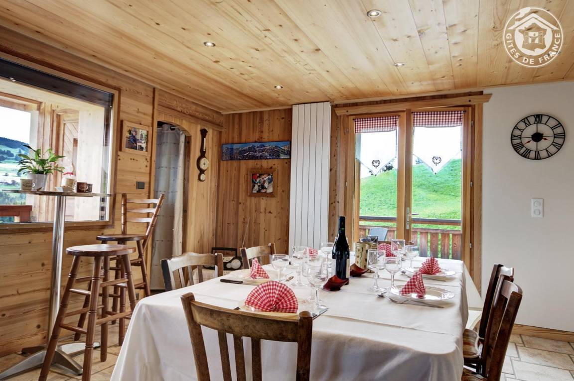 „Beau chalet en retrait sur les hauteurs du village. La vue est splendide et l'environnement très calme. Les stations de ski se rejoignent en 15min de voiture sans difficulté, mais il y a aussi de très belles balades à faire à pied qui partent du chalet. On a adoré et nous reviendrons !“