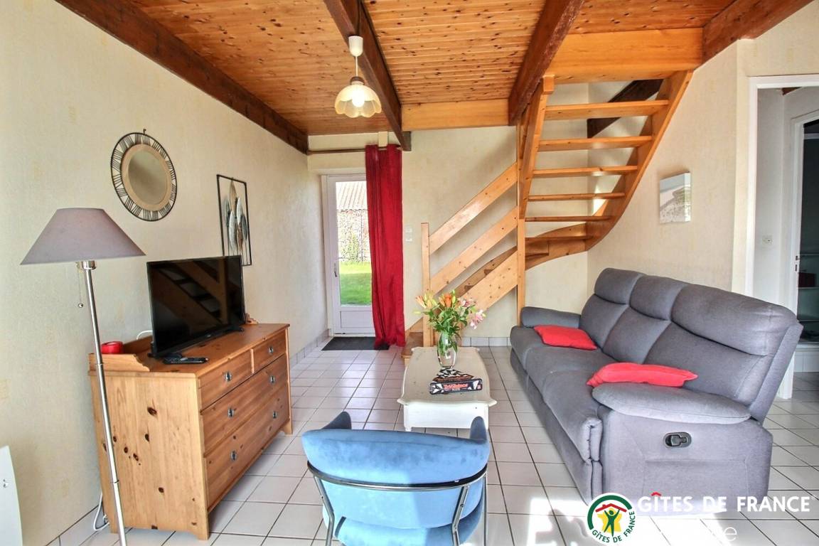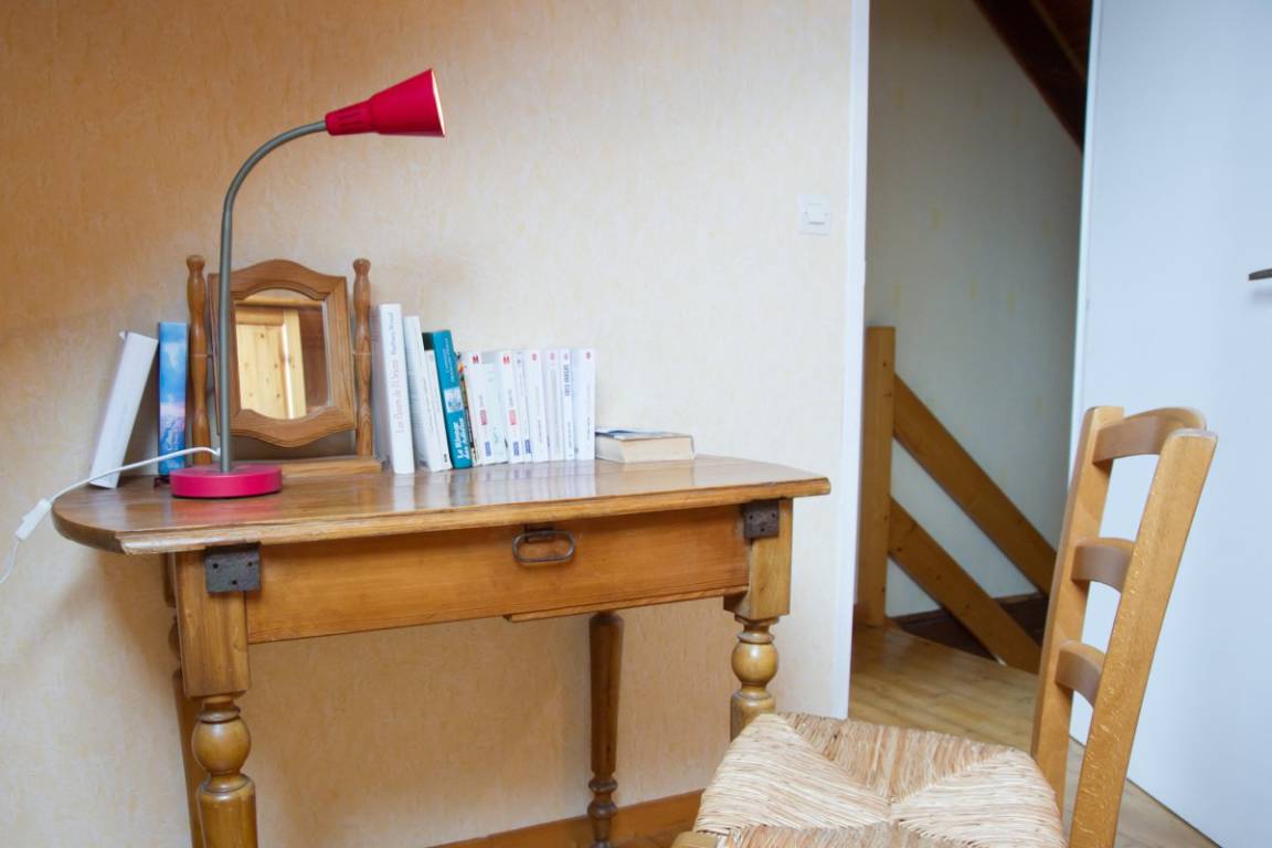 Dieser Gîte grenzt an das Haus der Eigentümer an und befindet sich auf einem Bauernhof. EG: Wohnraum mit Kochecke, Dusche, sep. WC. 1.Stock: Doppelzimmer mit Babybett, Schlafzi. mit Doppelstockbett. E-Heizung. Umzäunter Garten, Gartenmöbel. Terrasse. Spielplatz. In der Anlage: Waschmaschine, Trockner und Tischfußball (mit den anderen Mietern zu teilen).