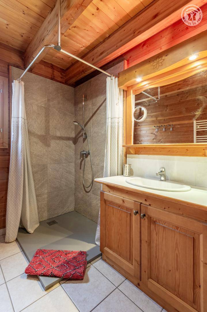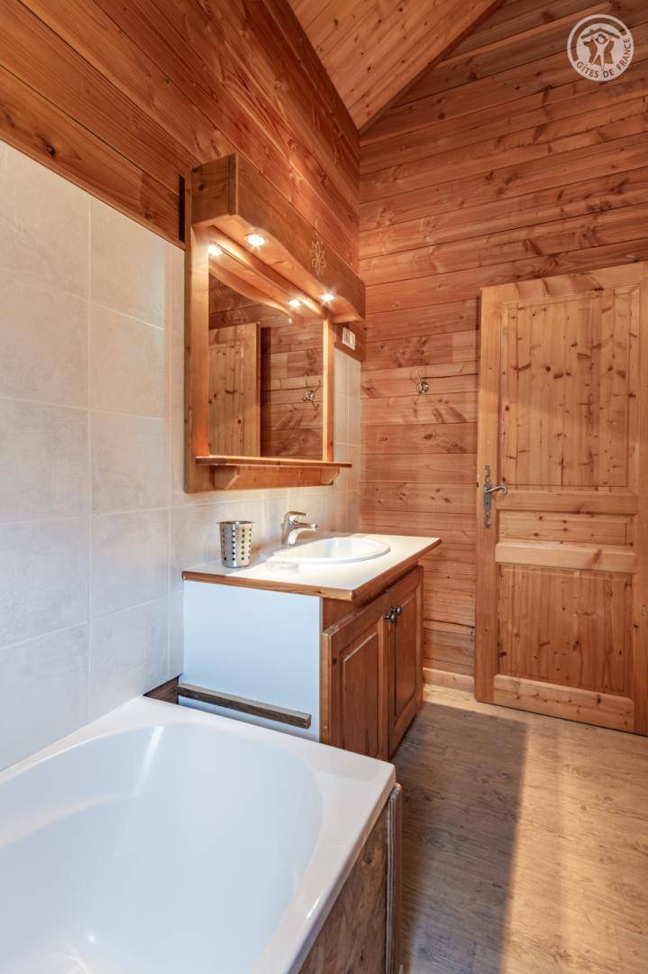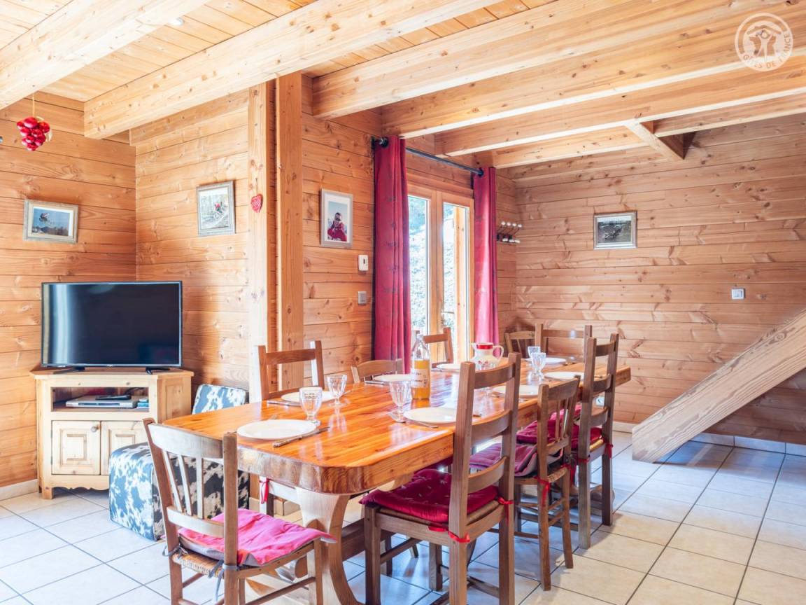 Individuelles Chalet. Erdgeschoss + 1. Stock: Wohnzimmer-Küchen-Lounge-Bereich, WiFi-Verbindung, 4 Schlafzimmer (1 Doppelbett / 2 Einzelbetten / 2 Einzelbetten / 1 Doppelbett), Zwischengeschoss, Badezimmer Badezimmer (Badewanne), Badezimmer (Dusche), 2 separate Toiletten. Terrasse mit norwegischem Bad. Balkon. Boden. Unterstand für ein Auto. Ski les Bottières / Domaine des Sybelles 500 m entfernt. Gesamtnutzfläche: 105m² inkl. Dachgeschossflächen.