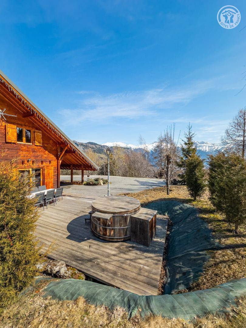 „Site avec une vue magnifique, un chalet confortable dans une station familiale avec un bain nordique très apreciable après une bonne randonnée en montagne.“