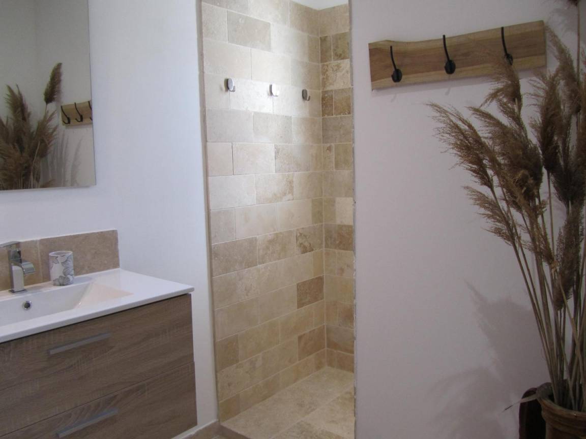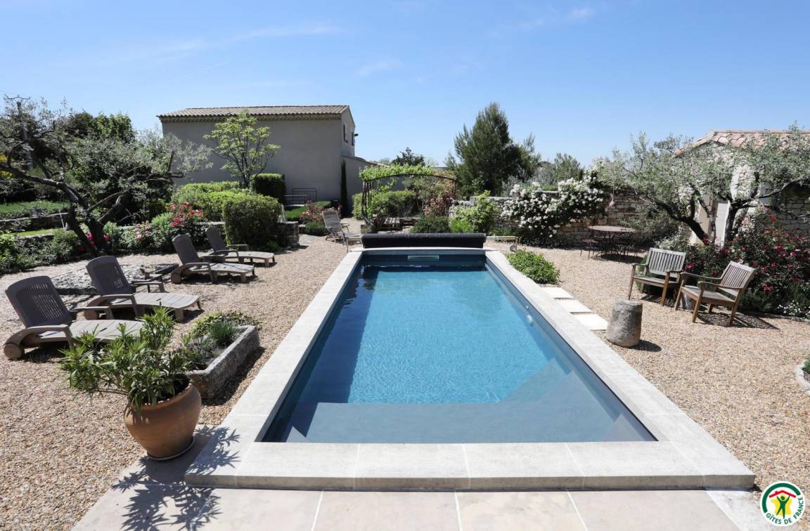 Fanny und Michel haben sich in dieses Haus verliebt, das 5 Minuten nordöstlich von Valréas, der Hauptstadt der Enklave des Papes, liegt. "Au jardin provençal" ist ein unabhängiges Haus, klimatisiert, auf einer Ebene angelegt, wo das Leben sowohl draußen als auch drinnen gut ist. Der Eingang öffnet sich zu einem großen, hellen Wohnzimmer (55m²) mit 2 Glastüren, die Zugang nach draußen bieten, einer Hauswirtschafts-/Waschküche, einem Wohnzimmer mit angrenzendem Zugang zur überdachten Terrasse, 2 Schlafzimmern (1x160x200 mit Fernseher) (1x140x190), Badezimmer mit Badewanne und ebenerdiger Dusche, separates WC. Das private Schwimmbad (4 x 8 m, maximale Tiefe 1,10 m, alarmgesichert und mit Aktivsauerstoff behandelt) ist unübersehbar. Das abgeschlossene Grundstück mit Toren umfasst Parkplätze und Terrassen, von denen eine überdacht ist.