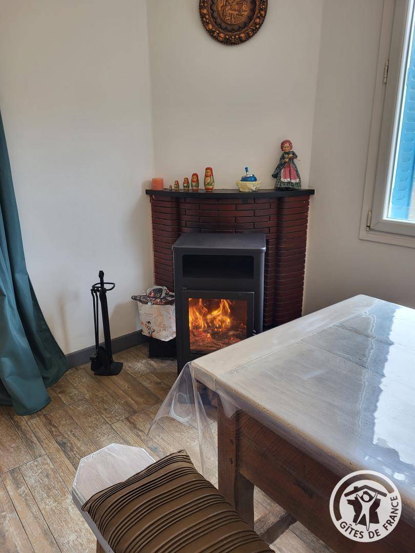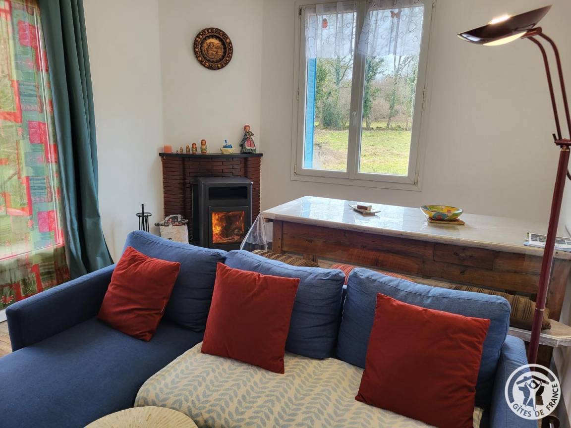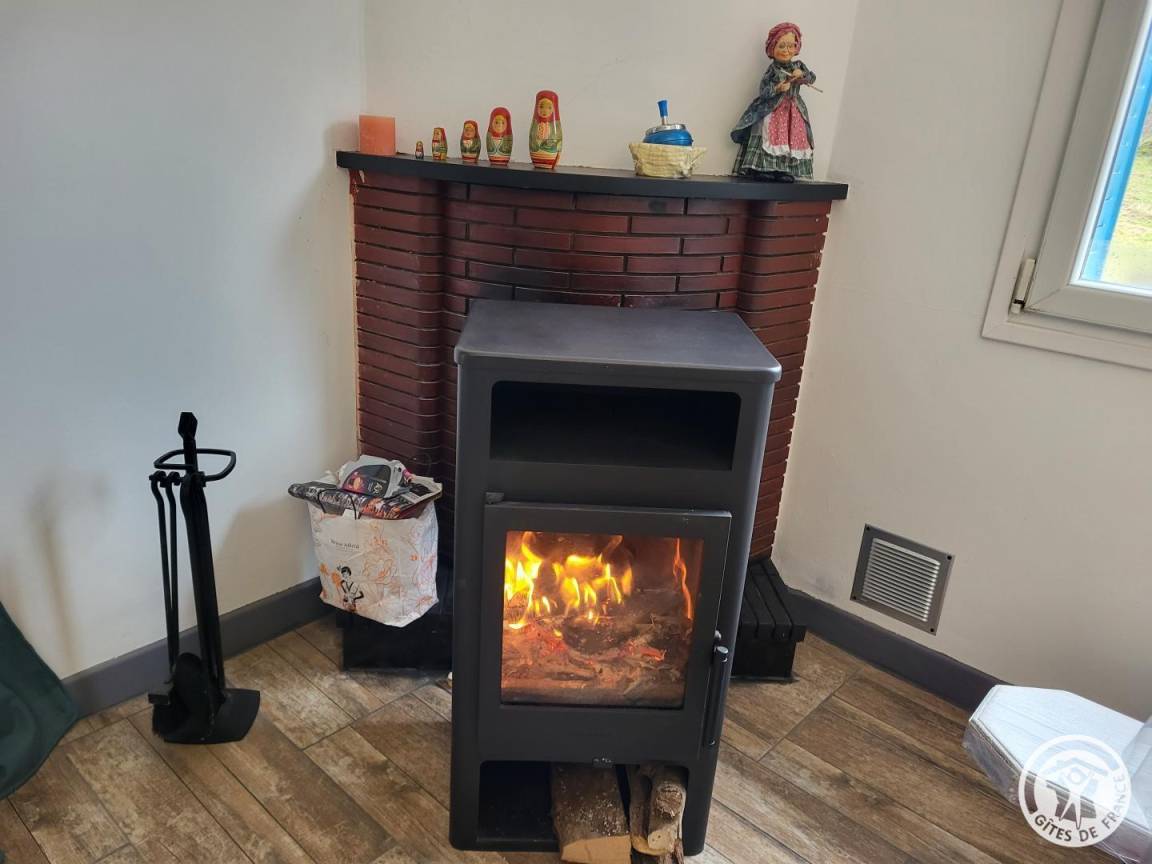 „Nous avons passé une semaine agréable dans cette jolie maison bleue, au calme, en pleine nature. Nous avons eu le plaisir de profiter de flambées dans le poêle, grâce au bois fourni très gentiment par les propriétaires: C'est vraiment très bien. Un regret pour les WC qui sont dans la petite salle d'eau“