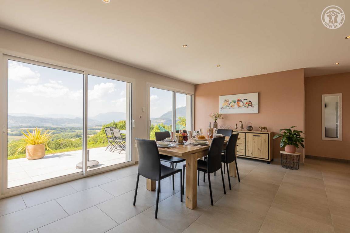 „Gîte très récent et élégant, très bien conçu pour quatre personnes (ou six, à la rigueur).Par les baies vitrées de la grande salle (salon, salle à manger, cuisine), la vue est étonnante sur la campagne alentour. Tout est au rez-de-chaussée: Pas d'escalier à monter. Très bien pour les amateurs de nature (promenades à pied ou à vélo) et de tourisme: Chanaz, lac du Bourget, Aix-les-Bains, abbaye de Hautecombe, Chambéry, lac d'Aiguebelette. Annecy est à moins d'une heure, en voiture. En résumé: Une très bonne semaine en Savoie.“