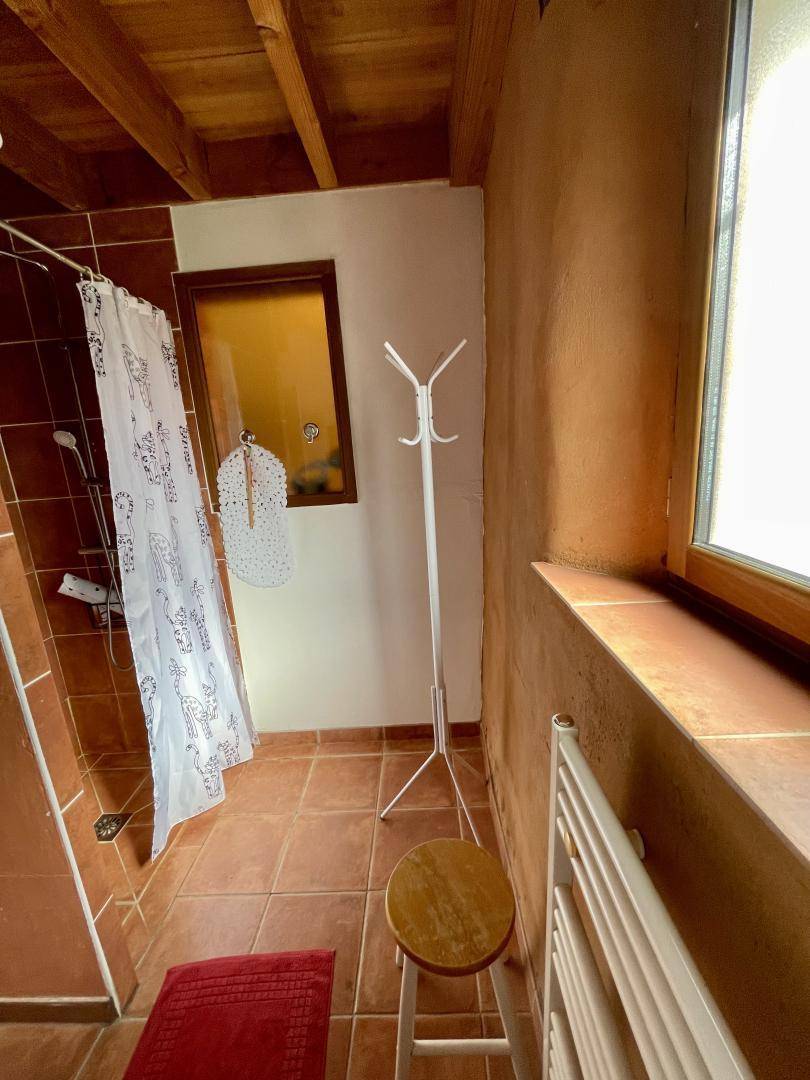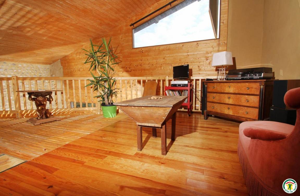 Die Ferienunterkunft grenzt an weitere Unterkünfte, ist aber völlig unabhängig. Erdgeschoss: großes Wohnzimmer mit Holzofen, Einbauküche. 1 Zimmer (1 Bett 180 x 200 cm). Obergeschoss: 1 Zimmer (1 Bett 140 x 200 cm), Bad mit Dusche. Solarheizung.