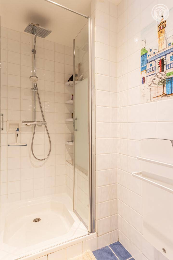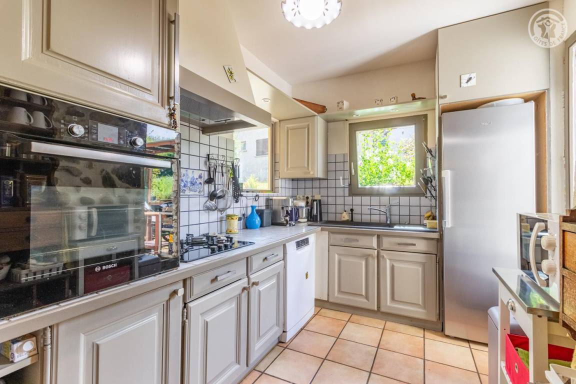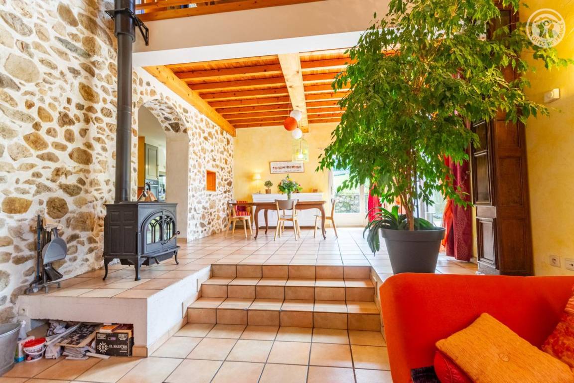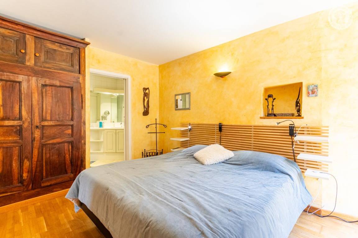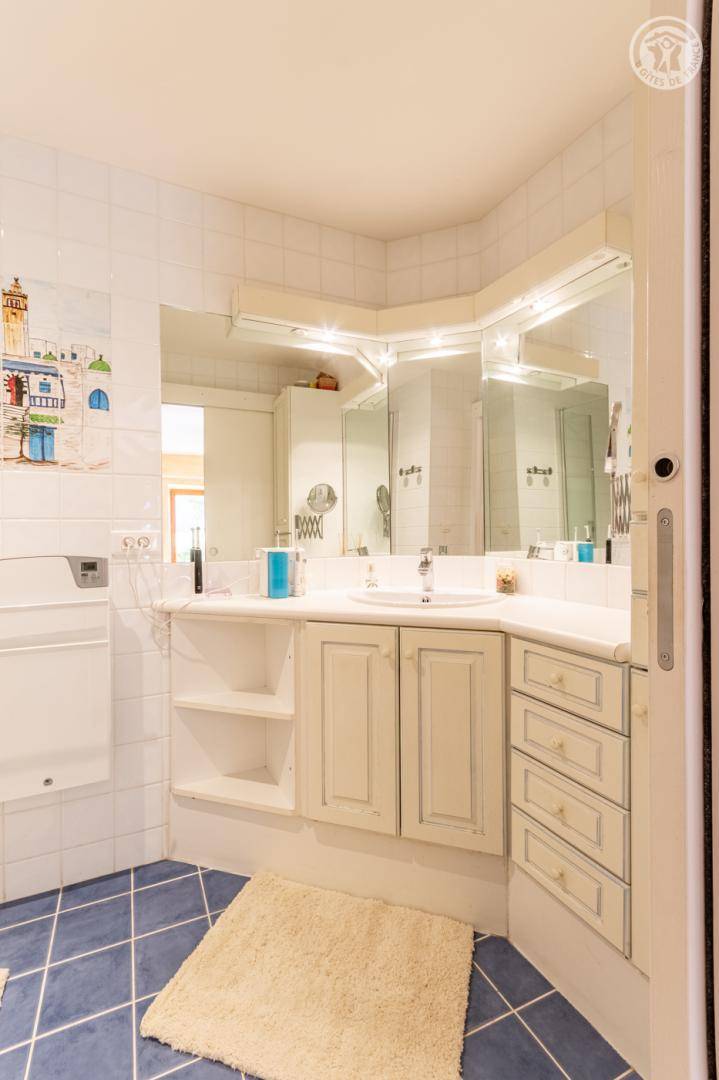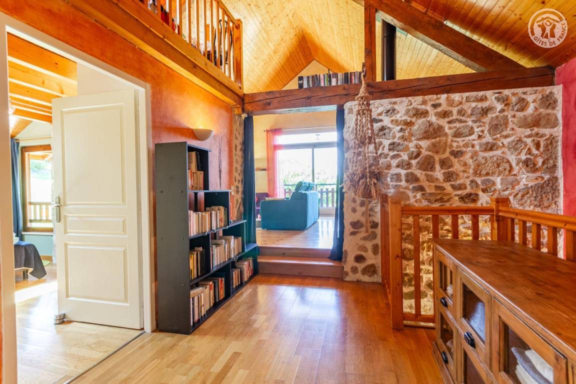 Ferienhaus auf 2 Ebenen mit halbem Treppenabsatz, bestehend aus im Erdgeschoss: einem Eingang, einem großen Flur mit Küchenbereich, einem Wohnzimmer, 1 Schlafzimmer (1 elektrisches Doppelbett 180 x 200 cm) mit eigenem Bad (Dusche), separatem WC, Waschküche Zimmer (Waschmaschine und Gefrierschrank). Obergeschoss: 1 Schlafzimmer (1 Doppelbett 160x200 cm), 1 Schlafzimmer am Hang (1 Einzelbett 130x190 cm) mit integriertem Zwischengeschoss am Hang (Zugang über eine Leiter - 1 Matratze auf Untergestell ohne Untergestell für 2 Personen 140x190 cm), a Badezimmer (Badewanne und WC), ein Wohnzimmer im Zwischengeschoss (Heimkino). Terrasse und Garten.