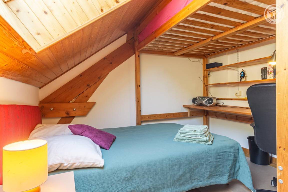 „Ce gîte est très spacieux, bien agencé et bien équipé. Le jardin est immense, avec plusieurs arbres pour l'ombrager en partie (en particulier un près de la terrase pour pouvoir profiter de l'air frais même quand le soleil cogne).Les 3 lits doubles (un dans chaque chambre) sont faits et plein de serviettes sont à notre disposition. Attention, le 4e lit (en mezzanine dans une des 3 chambres) grince vraiment beaucoup. Bref, le gîte est tout a fait conforme à sa description sur l'annonce et nous y avons passé un merveilleux séjour ! (Nous étions 6 personnes).“