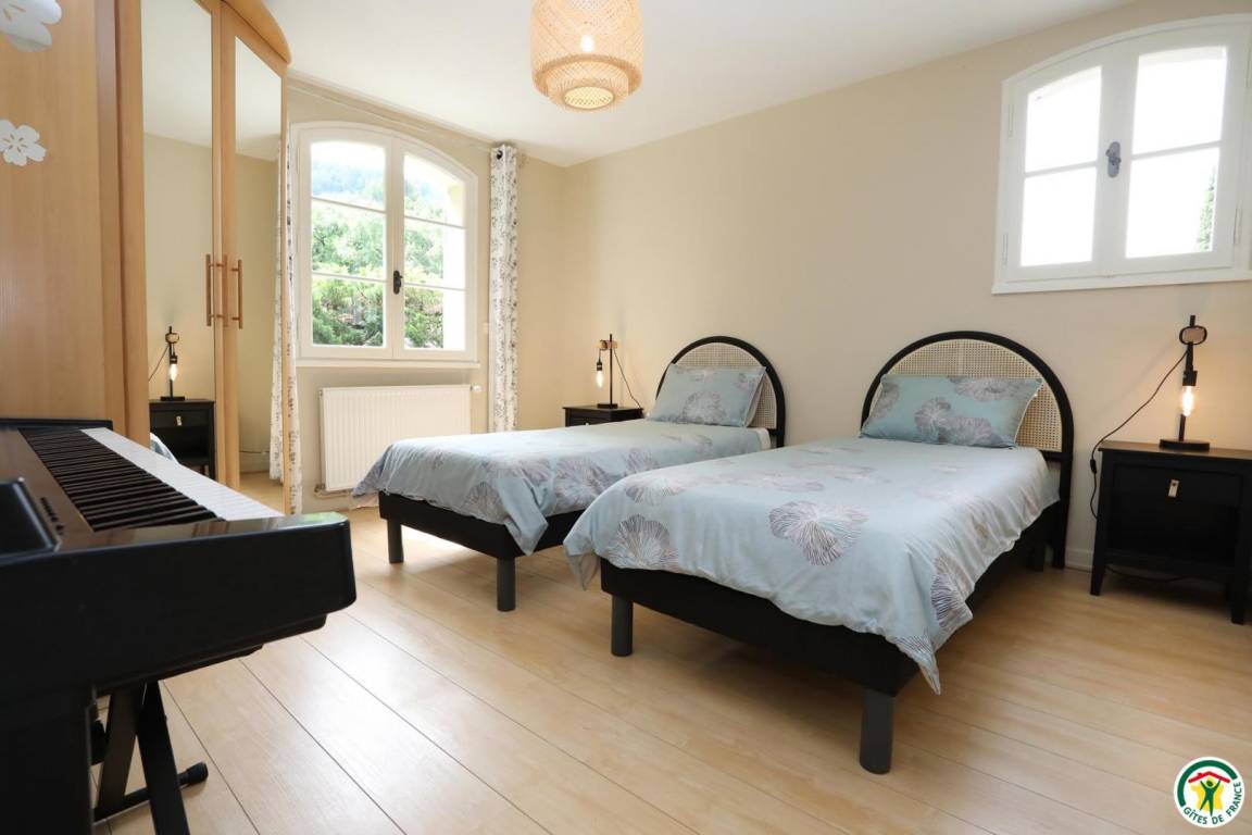 „Séjour à 5 du 08/07/2023 au 22/07/2023.Tout d'abord, un grand merci à Agnès pour son accueil: Il ne manquait rien à notre arrivée, ni son sourire, ni l'indispensable pour bien démarrer le séjour, et même plus. Le gîte est spacieux, bien conçu, parfait pour se retrouver ou s'isoler, avec ses deux salons et ses extérieurs. Il est vivant, il est habité, ça se voit; on se sent rapidement chez soi. Agnès laisse accès à sa discographie qu'on prend plaisir à écouter dans le grand salon dont l'équipement sonore est à la hauteur de ses dimensions (impressionnant), à sa bibliothèque et, pour les musiciens, à un grand choix de partitions. Si vous savez jouer, le piano (magnifique) est là pour vous. Question cuisine: Pour un séjour de vacances, il y a tout ce qu'il faut. Agnès laisse à disposition son matériel (de qualité) et sa vaisselle. Les terrasses (3 en tout avec celle "sur les toits" où nous avons pris nos cafés du matin, jolie vue sur les collines et sur la chapelle Sainte Juste) sont agréables et permettent de s'aérer à toute heure en fonction du soleil ou de l'ombre recherchés, sans oublier le jardin où il fait bon flâner sous le chant des cigales. La piscine est parfaite pour nager, ou simplement se reposer sur la partie peu profonde. L'entretien est très bien réalisé et très discret (bravo).On est entouré de maisons mais vraiment on se sent ailleurs: Le quartier est calme, les voisins silencieux et il n'y a quasiment pas de vis-à-vis. Quant à la situation, le gîte est idéalement placé pour partir à la visite des villages perchés de la Drôme Provençale: Il faut prendre le temps de faire ceux qui sont moins renommés, car ils ont tous leur caractère propre. La ferme aux crocodiles à deux pas vaut vraiment le détour. Et bien d'autres trésors en Provence ou Ardèche. Ne craignez pas la chaleur de l'été: L'assurance du retour dans la fraîcheur et le confort du gîte permet d'affronter les pires canicules et se remettre doucement des efforts consentis.“