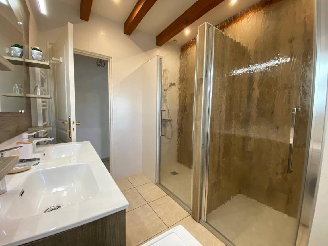 „Le lieu est très calme. La maison est bien équipée. une chose très pratique: La cuisine extérieure qui est abritée, comporte un barbecue et une plancha. Il y a aussi une grande terrasse couverte. Nous étions 6 et nous avons passé une très bonne semaine dans cette maison.“