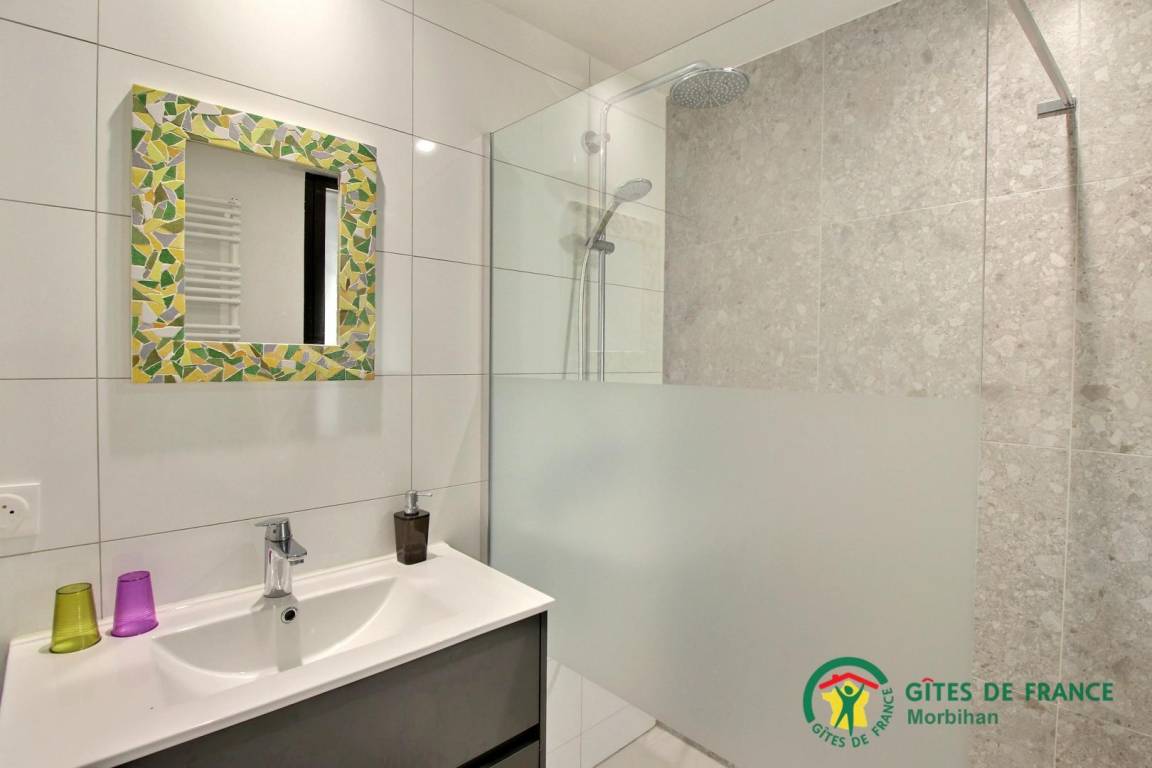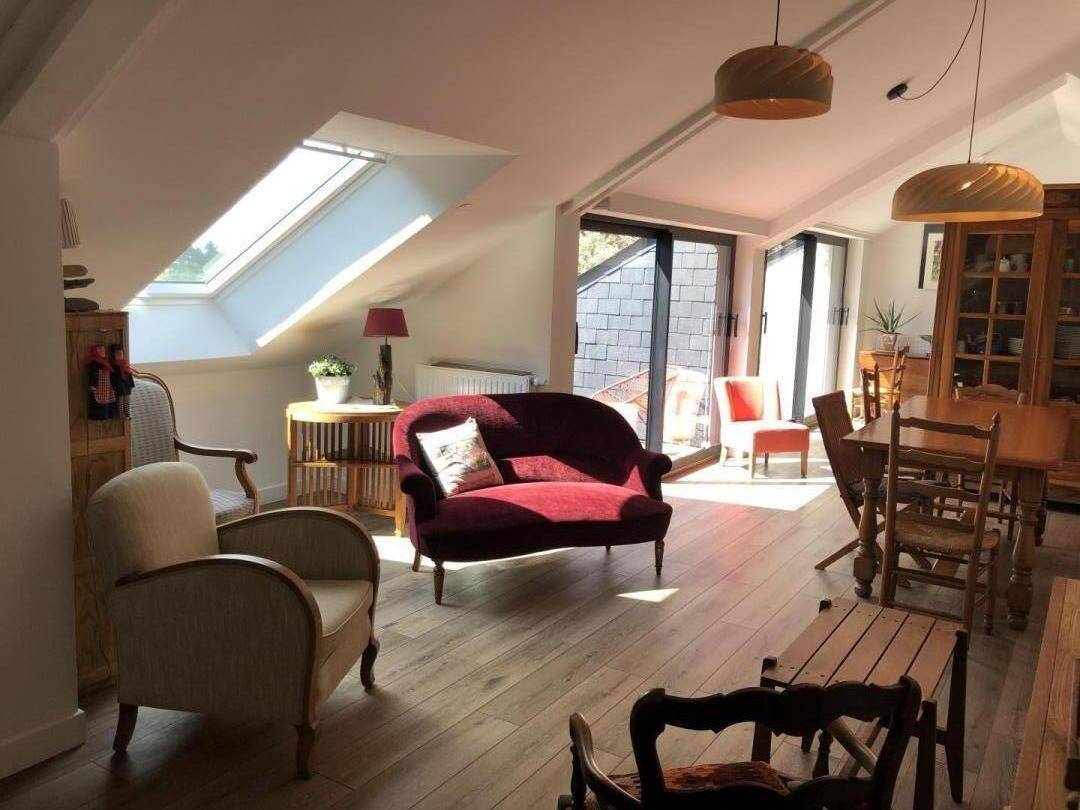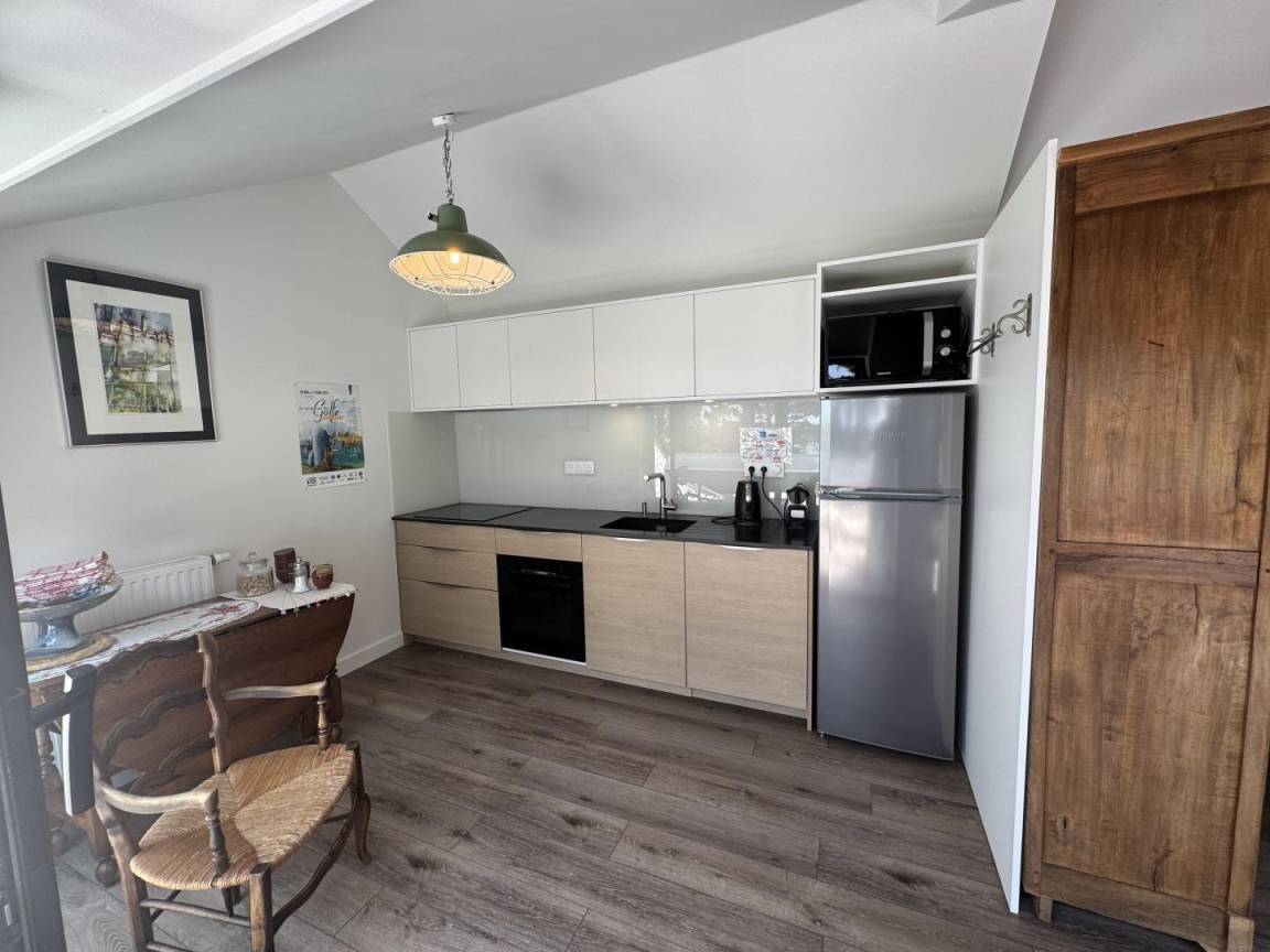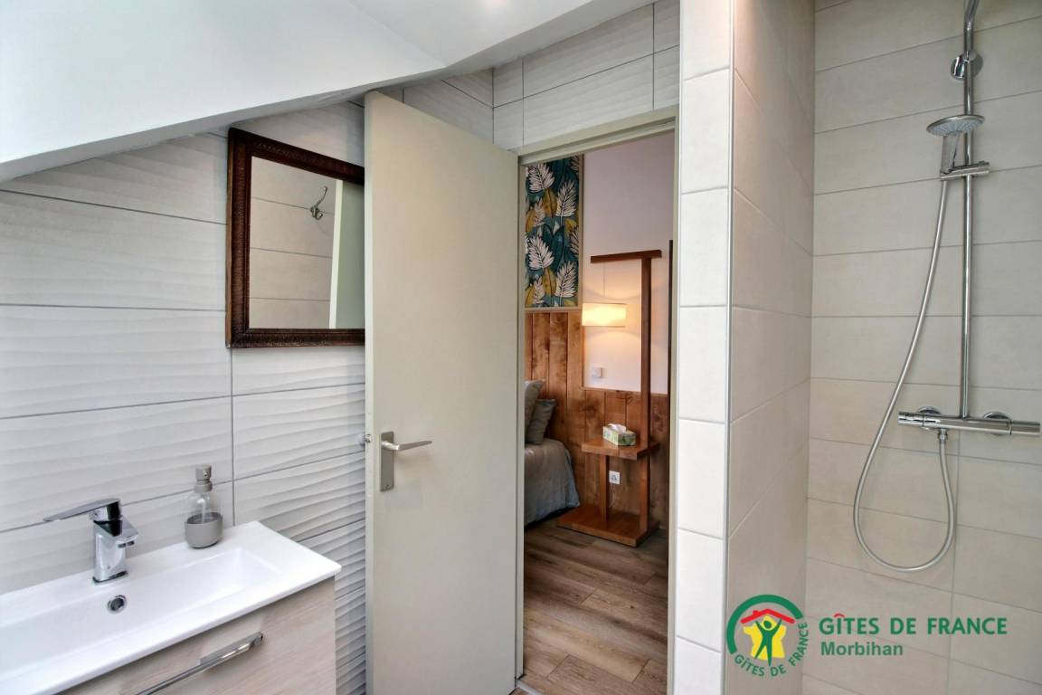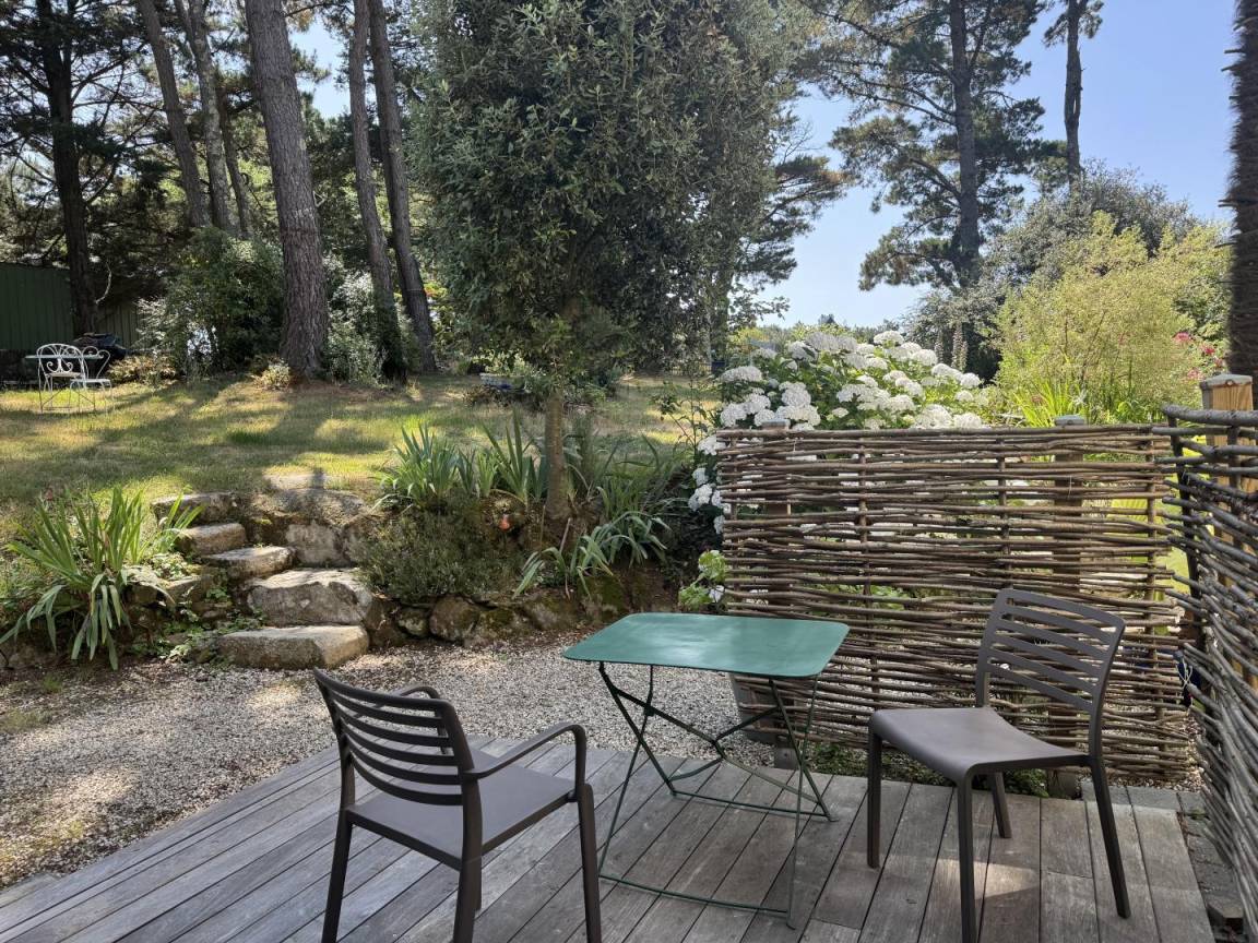 Das Cottage öffnet sich im Erdgeschoss zu einem Eingang, der zu einem Schlafzimmer (1 Bett in 180, verstellbar in 2 x 90) mit eigenem Bad und separatem WC und einer Terrasse führt. Im Obergeschoss haben Sie ein großes Wohnzimmer mit Lounge, Wohnzimmer und Einbauküche mit Zugang zu 2 Balkonen, um die Aussicht zu genießen! Ebenfalls auf dieser Ebene befinden sich 2 Schlafzimmer. Eines ist mit einem 1 180 modularen Bett in 2 x 90, einem eigenen Bad und einem separaten WC ausgestattet. Das andere Schlafzimmer hat ein 160 Bett und ein Badezimmer mit eigenem WC. Draußen: ein großer 5500 m² großer Garten (gemeinsam) mit Gartenmöbeln, Grill und privatem Parkplatz. Das Cottage grenzt an die Unterkunft der Eigentümer mit dem gemeinsamen Garten. Der Eingang zum Cottage von der Rückseite des Hauses ist privat.