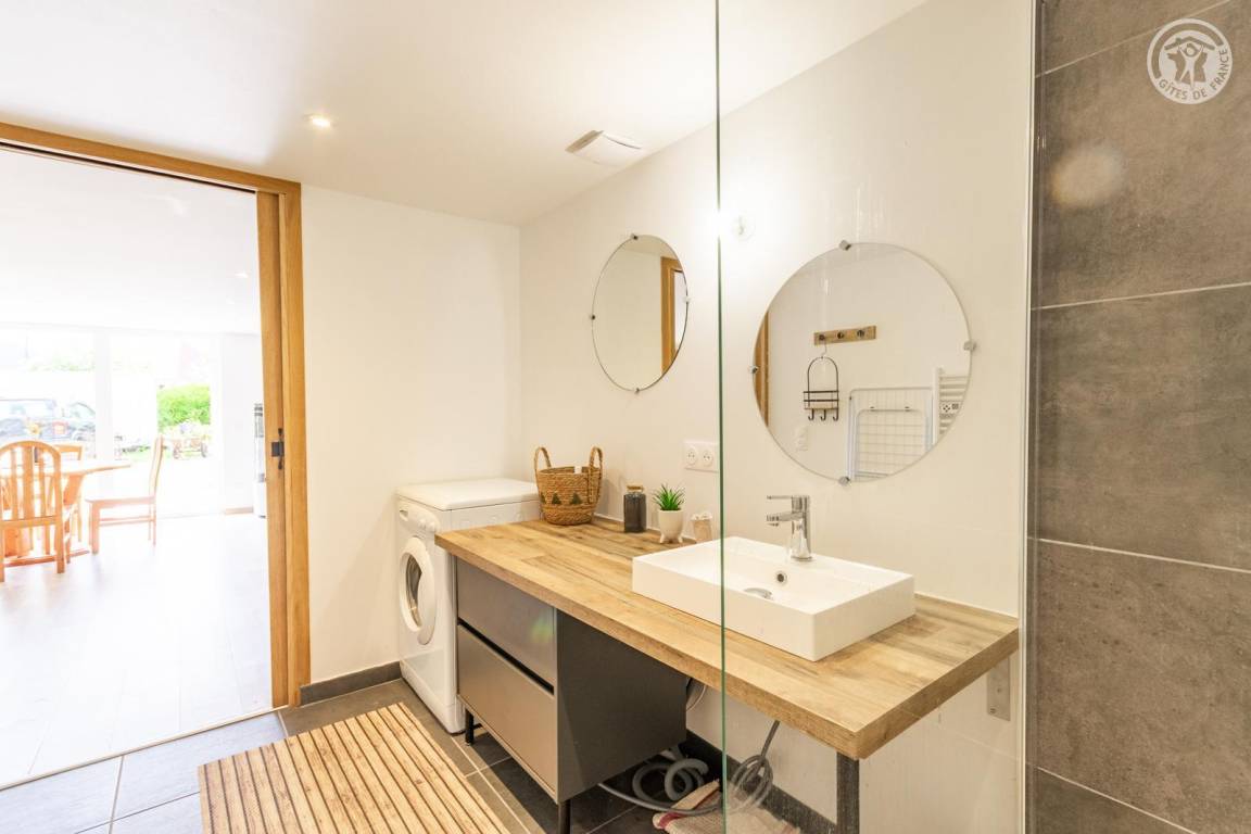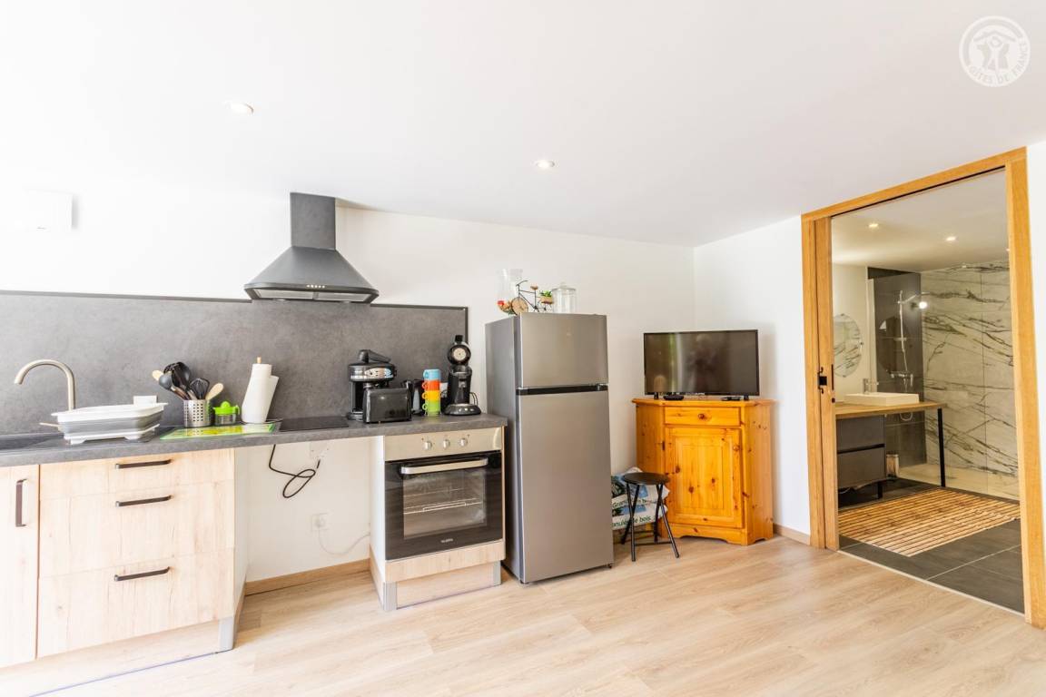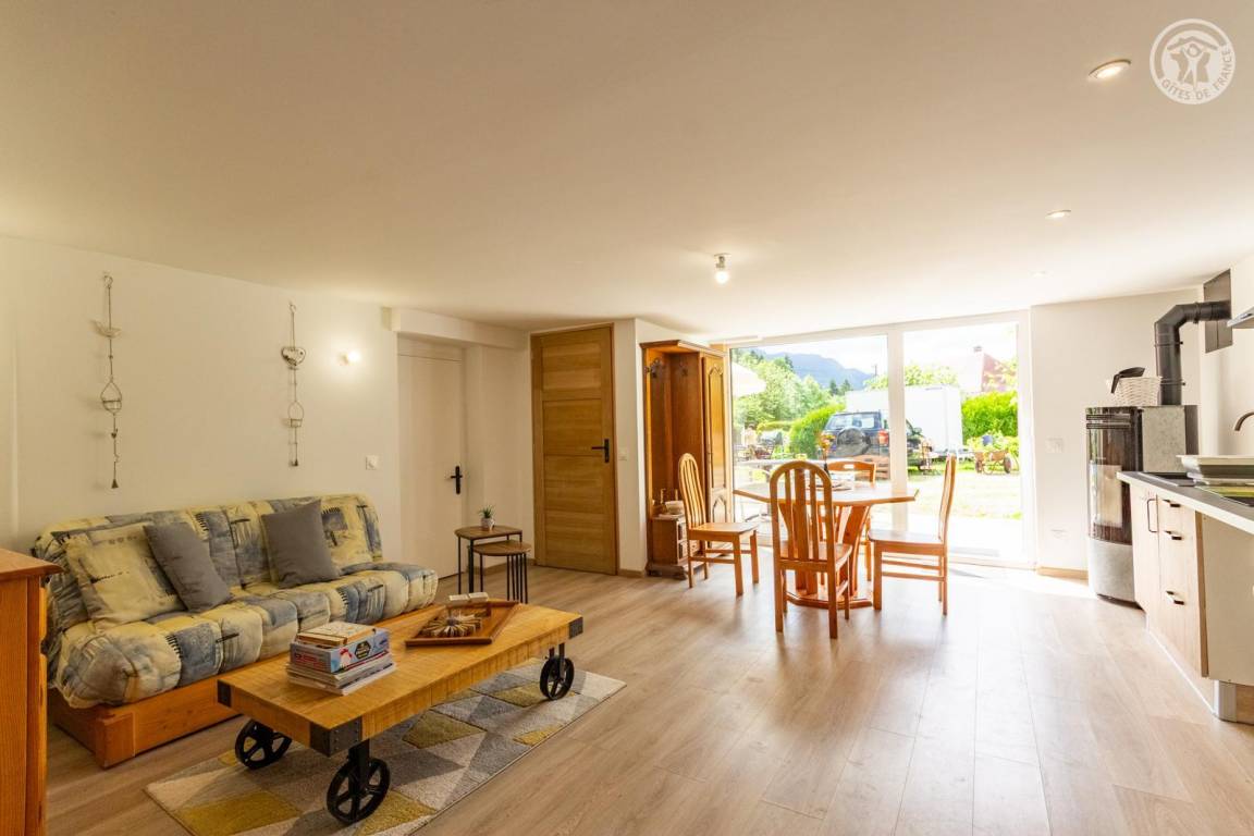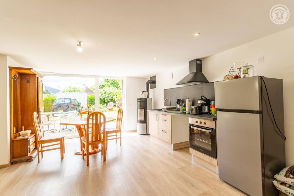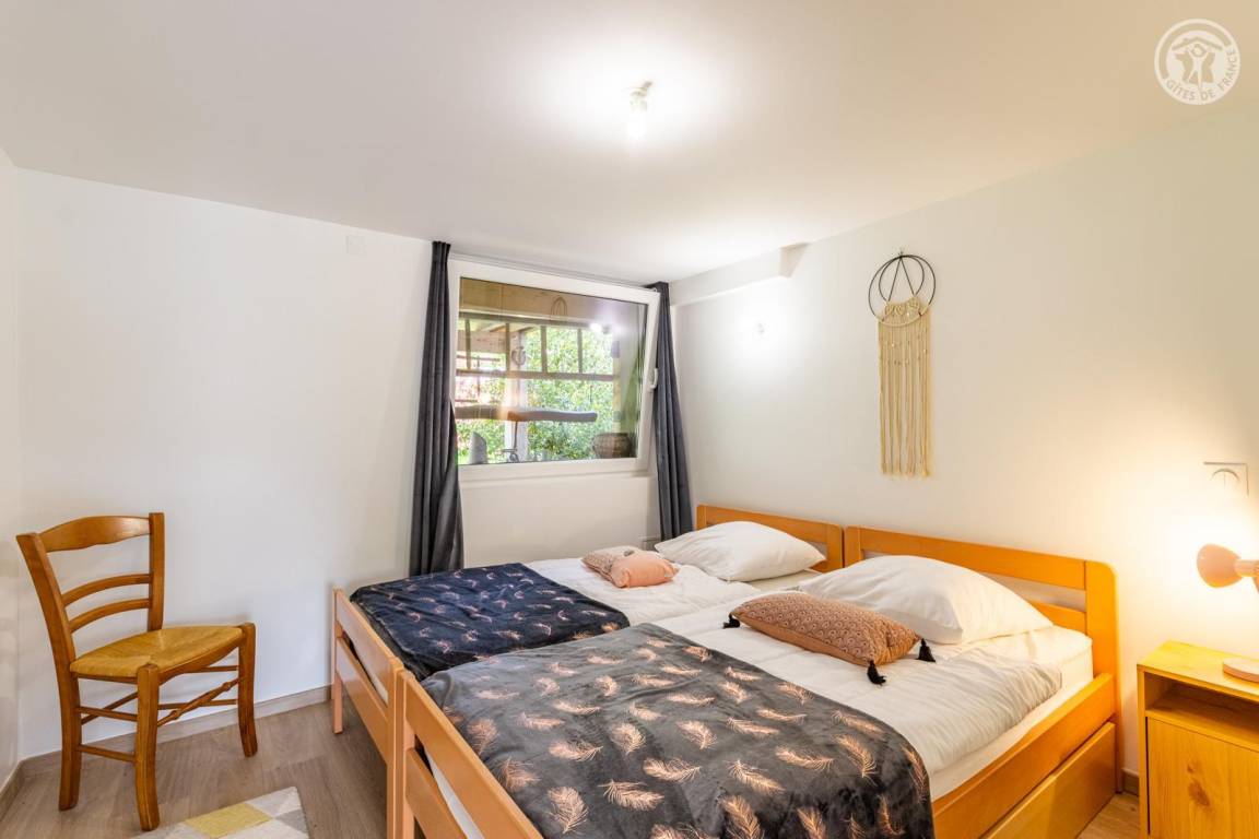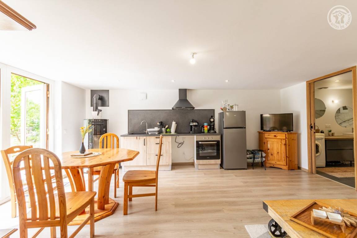 Die für Personen mit eingeschränkter Mobilität zugängliche Unterkunft im Erdgeschoss besteht aus einem Wohn-/Essbereich mit Küche (1 Schlafsofa BZ 2 Personen 140x190 cm - Pelletofen mit manueller Befüllung - Radio mit USB-Anschluss), einem Schlafzimmer (2 Einzelbetten 90x190 cm, die zu einem Doppelbett 180x190 cm zusammengestellt werden können), einem Badezimmer (ebenerdige Dusche) und separatem WC. Terrasse (elektrischer Tischgrill) und privater Garten am Rande eines Baches. Privatparkplatz 50 m entfernt.