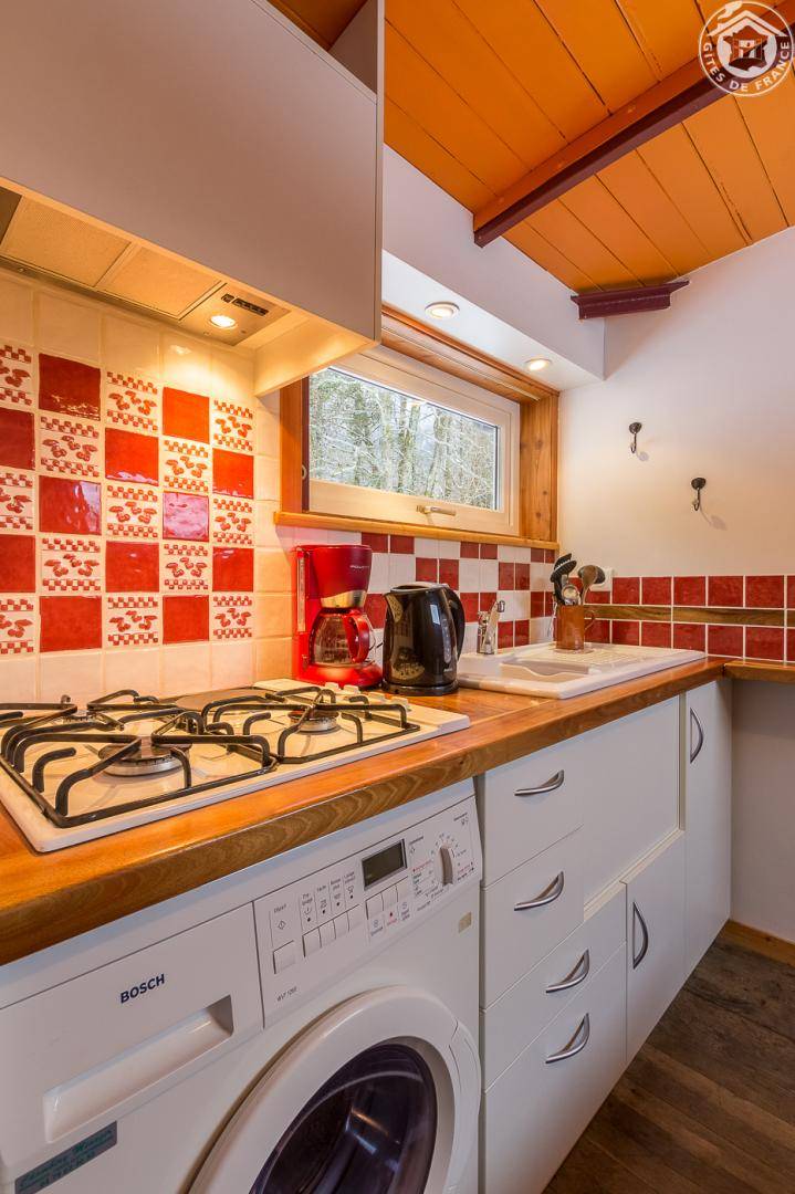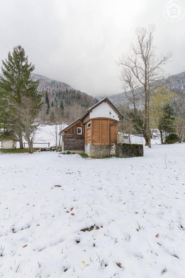 Individuelles Chalet. Hochparterre (Zugang über 4 Stufen): Wohnküche, Mezzanine (Höhe unter 1,80 m), 1 Schlafzimmer (1 Doppelbett), Duschbad. Wäschetrockner. Bettwäsche wird gestellt. Betten gemacht. Terrasse nach Süden. Boden. Skigebiet St Pierre de Chartreuse/Le Planolet 12 km, Le Désert d'Entremont (Alpin + Langlauf) 13 km. See Aiguebelette 29 km.