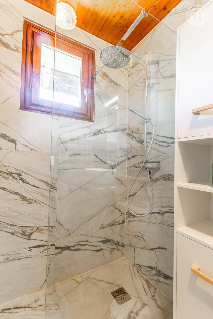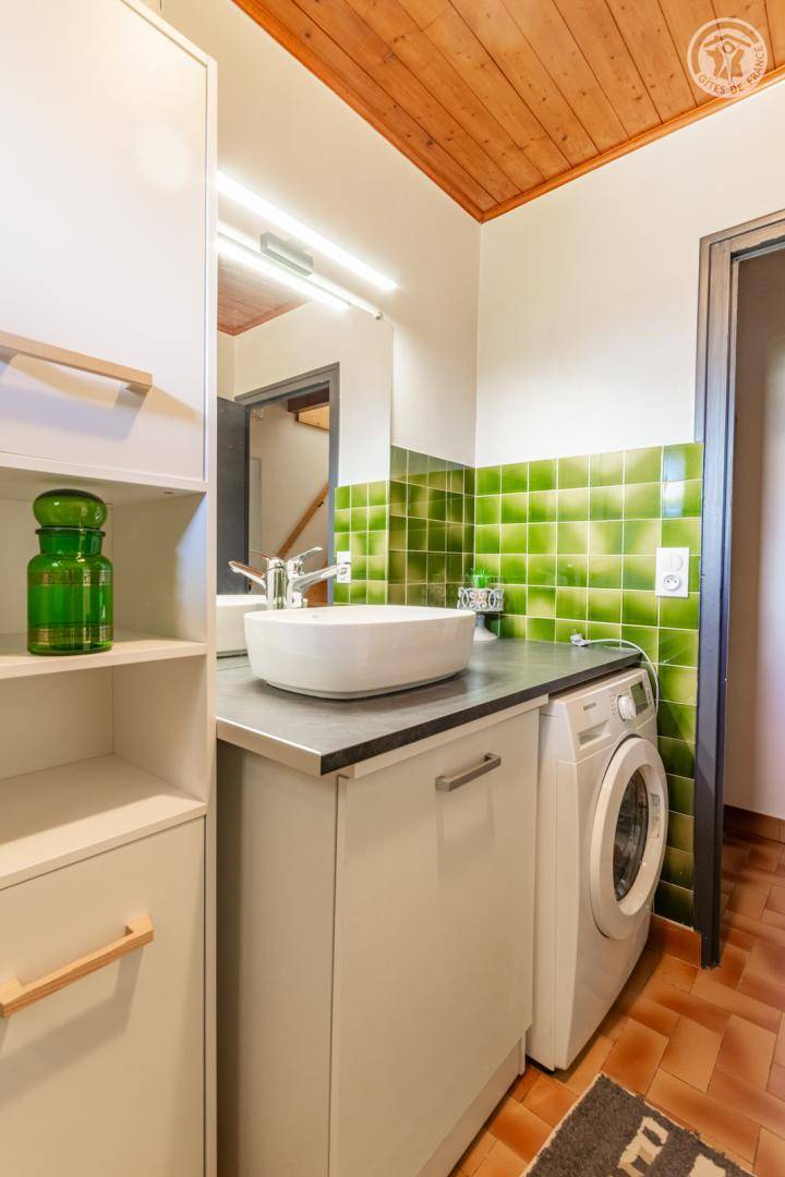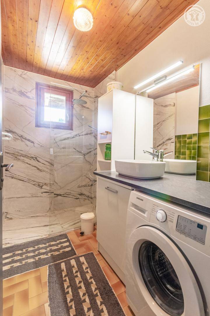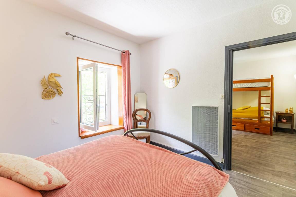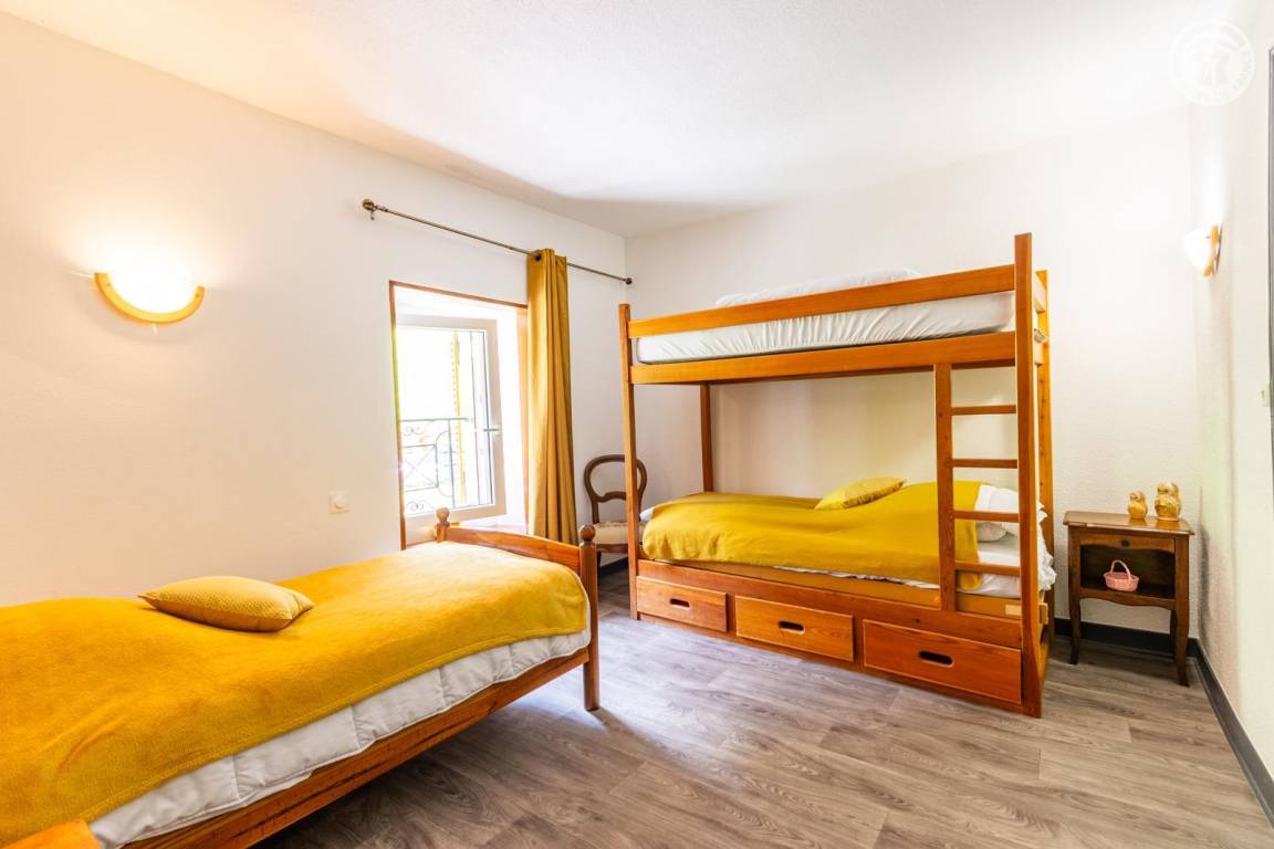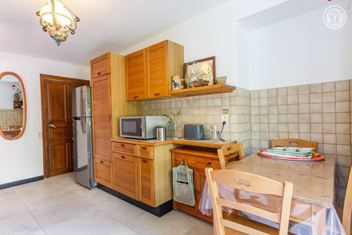 Ferienhaus auf 3 Ebenen, bestehend im Erdgeschoss: Eingang, Küche, Esszimmer. 1. Stock: 2 angrenzende Schlafzimmer (1 Doppelbett 140x190 cm / 3 Einzelbetten 90x190 cm, davon 2 Etagenbetten), 1 Schlafzimmer (1 Doppelbett 140x190 cm), Badezimmer (Dusche), separates WC. 2. Stock: Dachboden zum Wohnzimmer umgebaut (Fernseher, Kinderspiele, Bibliothek). Überdachte Terrasse und privater Garten. Privatparkplatz 50 m entfernt.