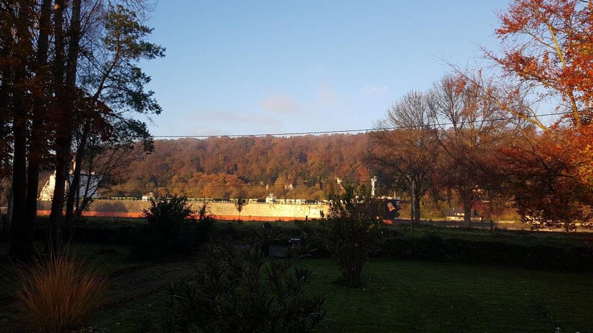 „C'est dans un cadre de verdure magnifique que nous avons passé une semaine de vacances. Toute cette verdure nous a ressourcés ! Installés sur la terrasse nous regardions les bateaux navigués comme glissants sur l'eau...Les propriétaires sont restés discrets et disponibles.Le gîte est très bien aménagé, rien ne manque, et avec ses baies vitrées nous avions une belle vue sur le parc environnant.“