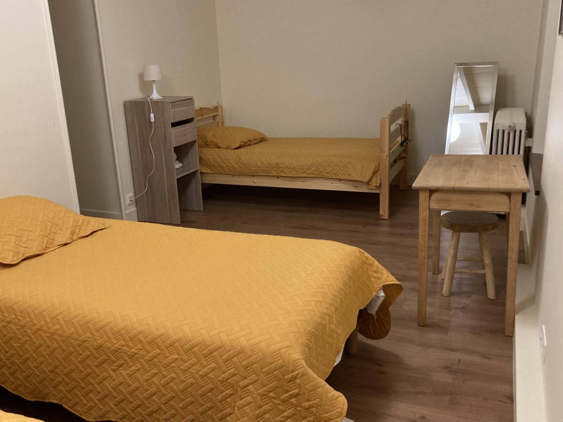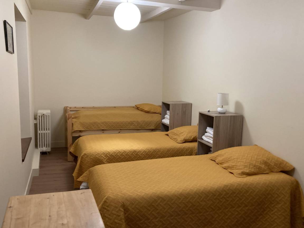 „La maison est très agréable et très bien équipée pour le groupe d'amis que nous étions. Il y a tout ce qu'il faut pour cuisiner même à 12. Il y a le wifi, 2 frigos, des rallonges et multiprise, câble HDMI à la télé pour se connecter... des détails très appréciables pour le séjour. Nous sommes arrivés pour le réveillon de la Saint Sylvestre et la maison était chauffée et les frigos allumés avec des glaçons sans oublié une bouteille de Muscat pour l'accueil. La maison possède un jardin clos que nous n'avons pas pu trop exploité mais la terrasse ensoleillée nous a permis de faire l'apéro dehors. Le centre ville et les commodités ( base de loisir) sont accessibles à pieds et pour ceux qui louent la salle des fêtes juste à 100m à coté d'un parking pour les voitures. La maison ne permet pas de stationner devant mais il y a un garage fermé pour accueillir une voiture (au chaud).“