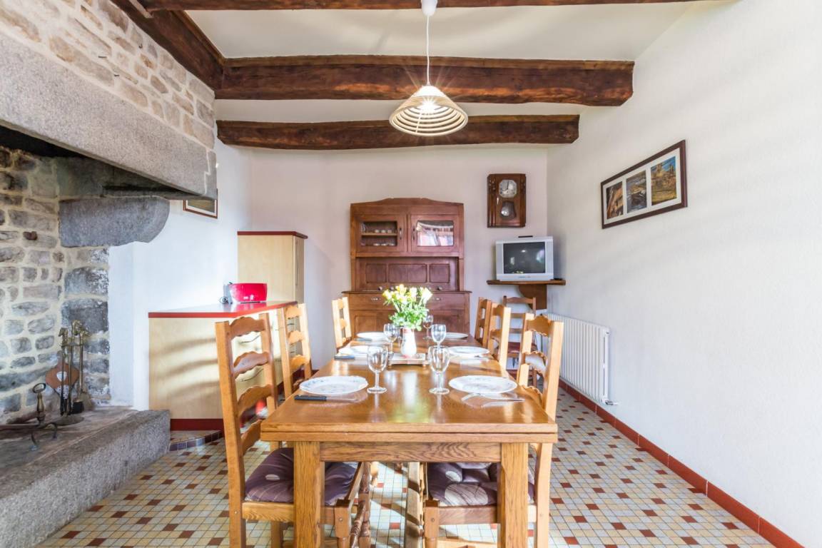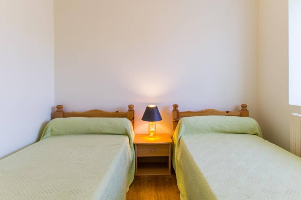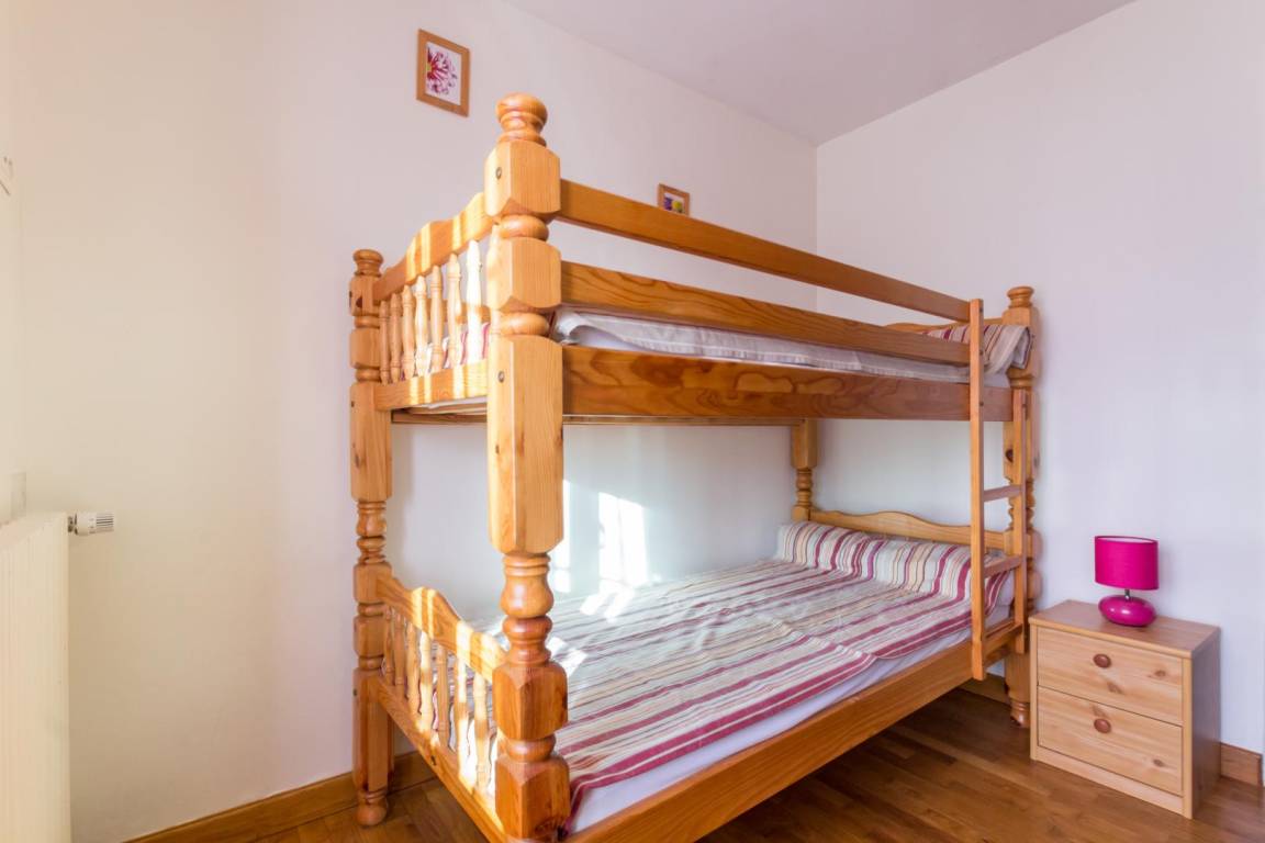 Unabhängiges Haus. Eingang. Wohnzimmer mit ausgestatteter Küchenecke (Geschirrspüler, Backofen, Mikrowelle). Wohnzimmer (TV, DVD) mit Schlafsofa. Badezimmer. TOILETTE. Obergeschoss: Schlafzimmer 1 (2 Betten 90 x 190), Schlafzimmer 2 (1 Bett 140 x 190), Schlafzimmer 3 (2 Etagenbetten 90 x 190). Babyausstattung. Elektroheizung extra. Bettwäsche und Handtücher können gemietet werden. Haushaltdienst. (obligatorisch für Unternehmen) Privates, nicht eingezäuntes Grundstück. Picknicktisch. Grill. Liegestühle. Parkplatz.