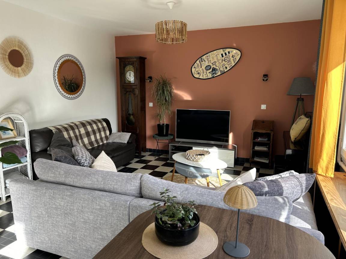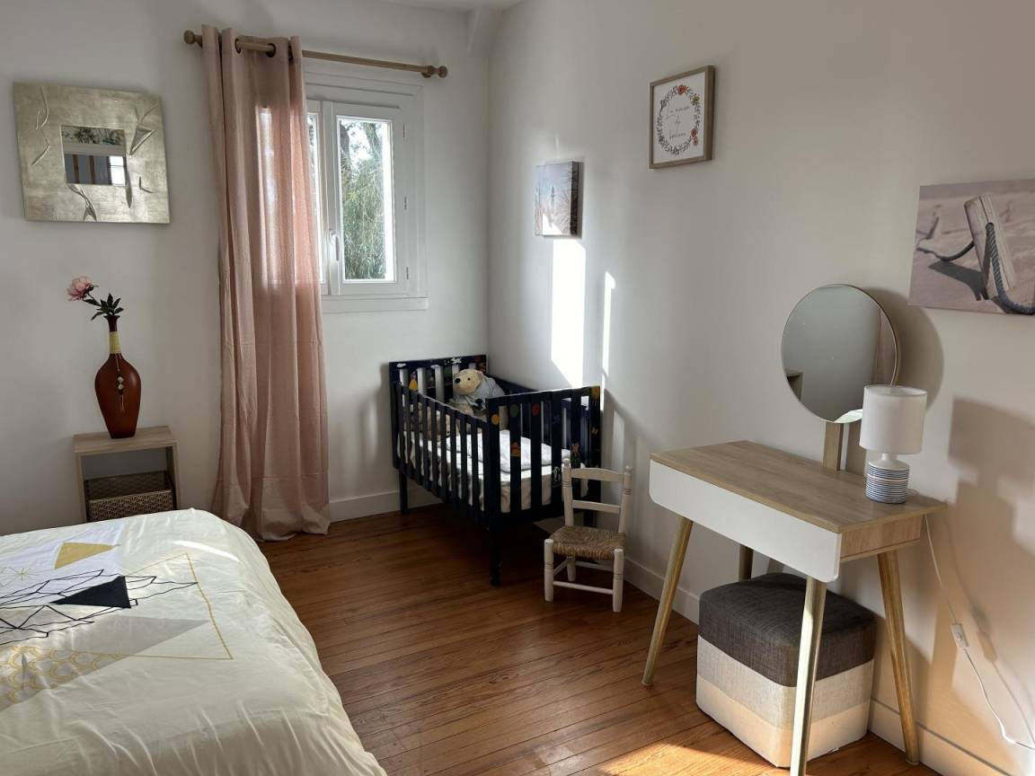 Diese Ferienwohnung für sieben Personen ist ideal für Aufenthalte mit Familie oder Freunden. Im Erdgeschoss haben Sie für Ihren Komfort ein großes gemütliches Wohnzimmer mit, für diejenigen, die es wünschen, ein Klavier zur Verfügung steht, eine zum Wohnzimmer offene Einbauküche, eine Waschküche mit Dusche, ideal für die Rückkehr vom Strand. , Toilette.