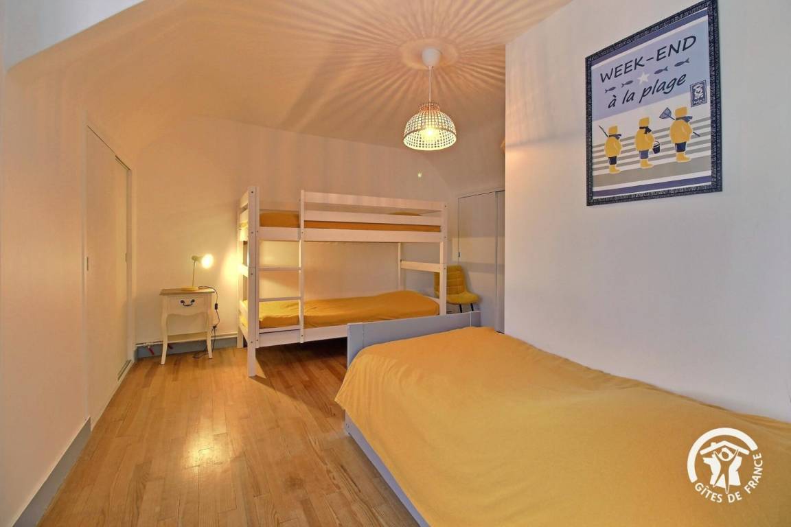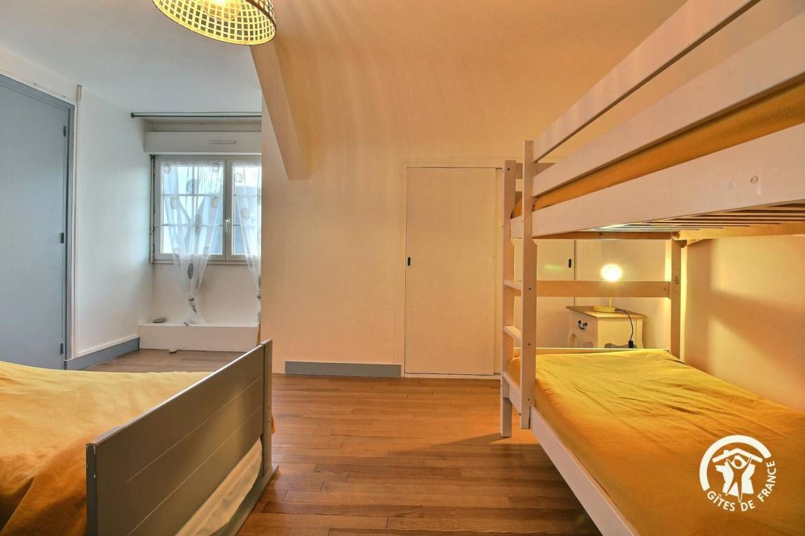 - Schlafzimmer mit zwei Ausziehbetten und zwei 90x190 cm großen Etagenbetten (das obere Bett ist nicht in der Belegung enthalten und eignet sich eher für Kinder)