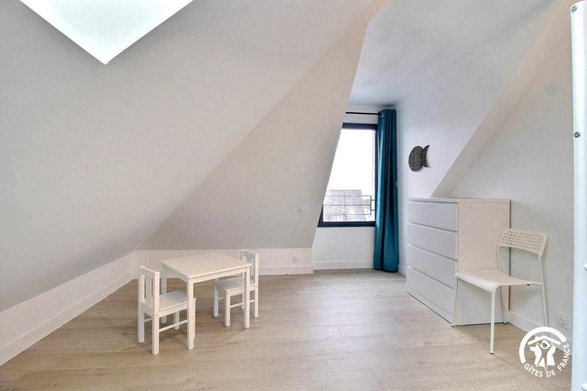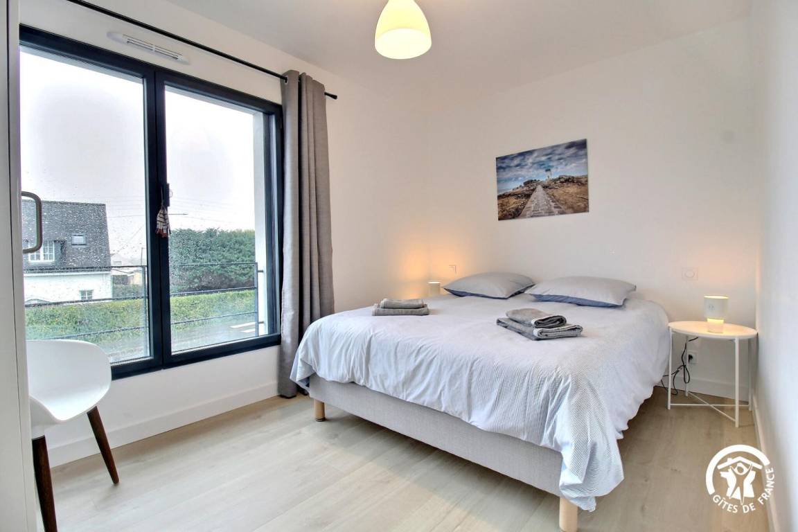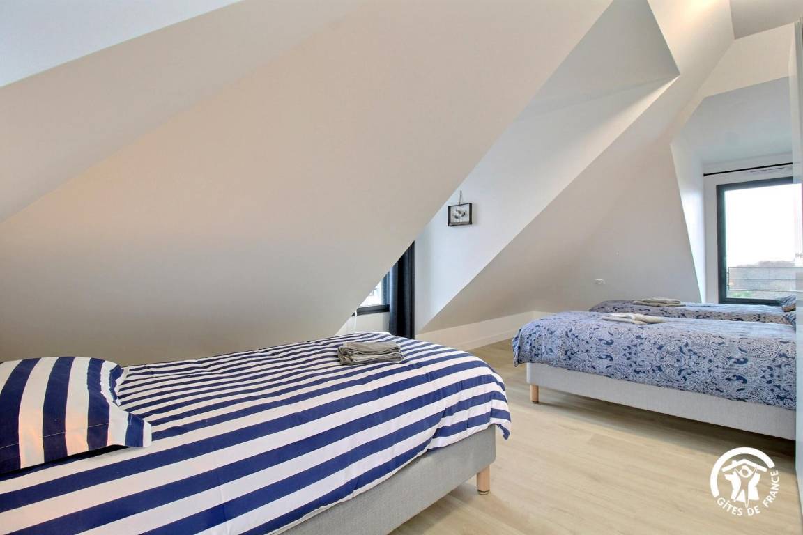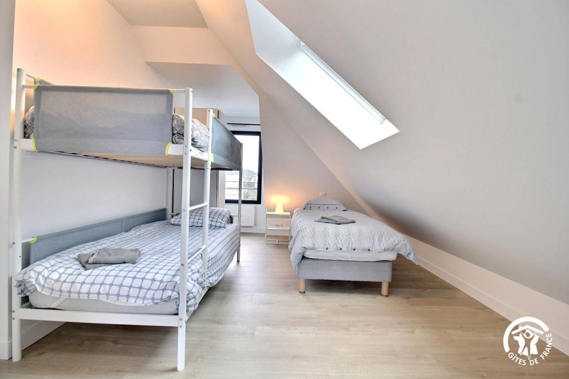 1 Dreibettzimmer mit drei Betten (90 x 190 cm). 1 Schlafzimmer mit einem Bett (90 x 190 cm) und einem Etagenbett (das obere Bett ist nicht in der offiziellen Belegung enthalten; eine zusätzliche Person kann auf Anfrage untergebracht werden).